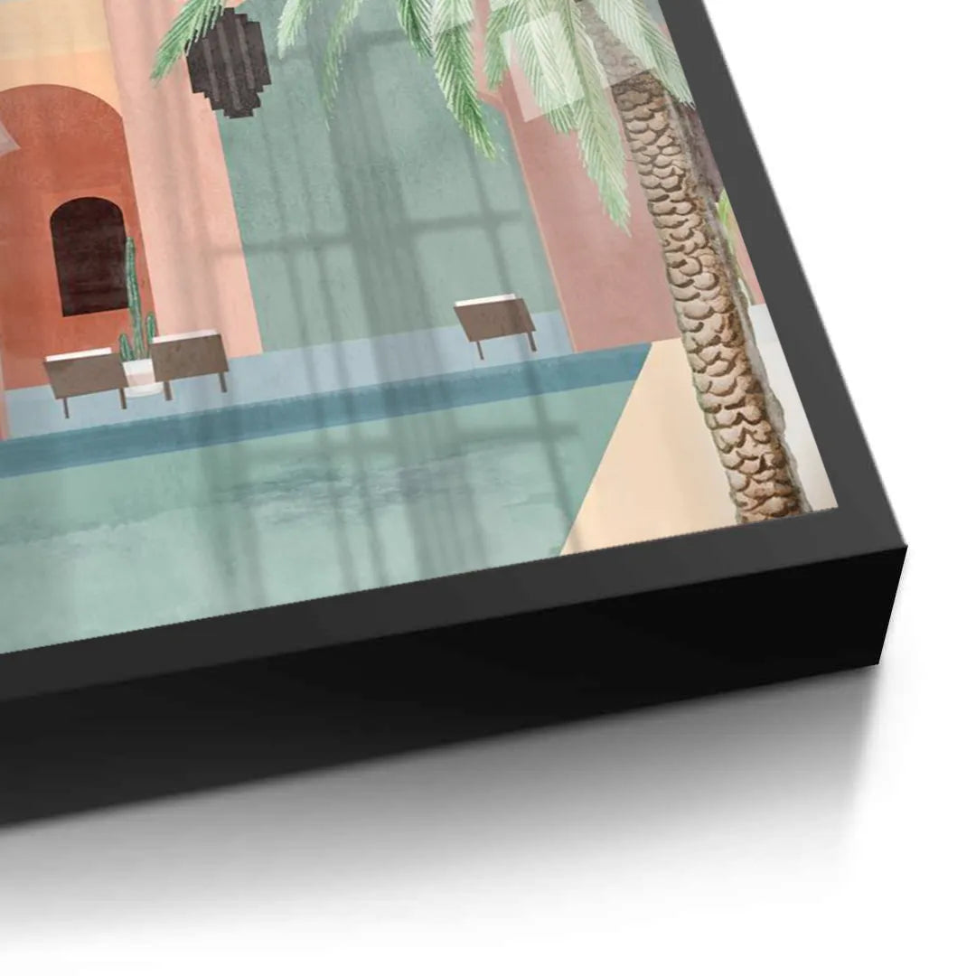 Marrakech Oasis is a captivating artwork that transports you to the serene heart of Morocco's "Red City." This piece captures the tranquil beauty of Marrakech's famous gardens and palm groves, blending the city's signature earthy reds with the vibrant greens of lush vegetation and the cool blues of water. It's a visual sanctuary that celebrates the harmony of nature and culture in this vibrant city.