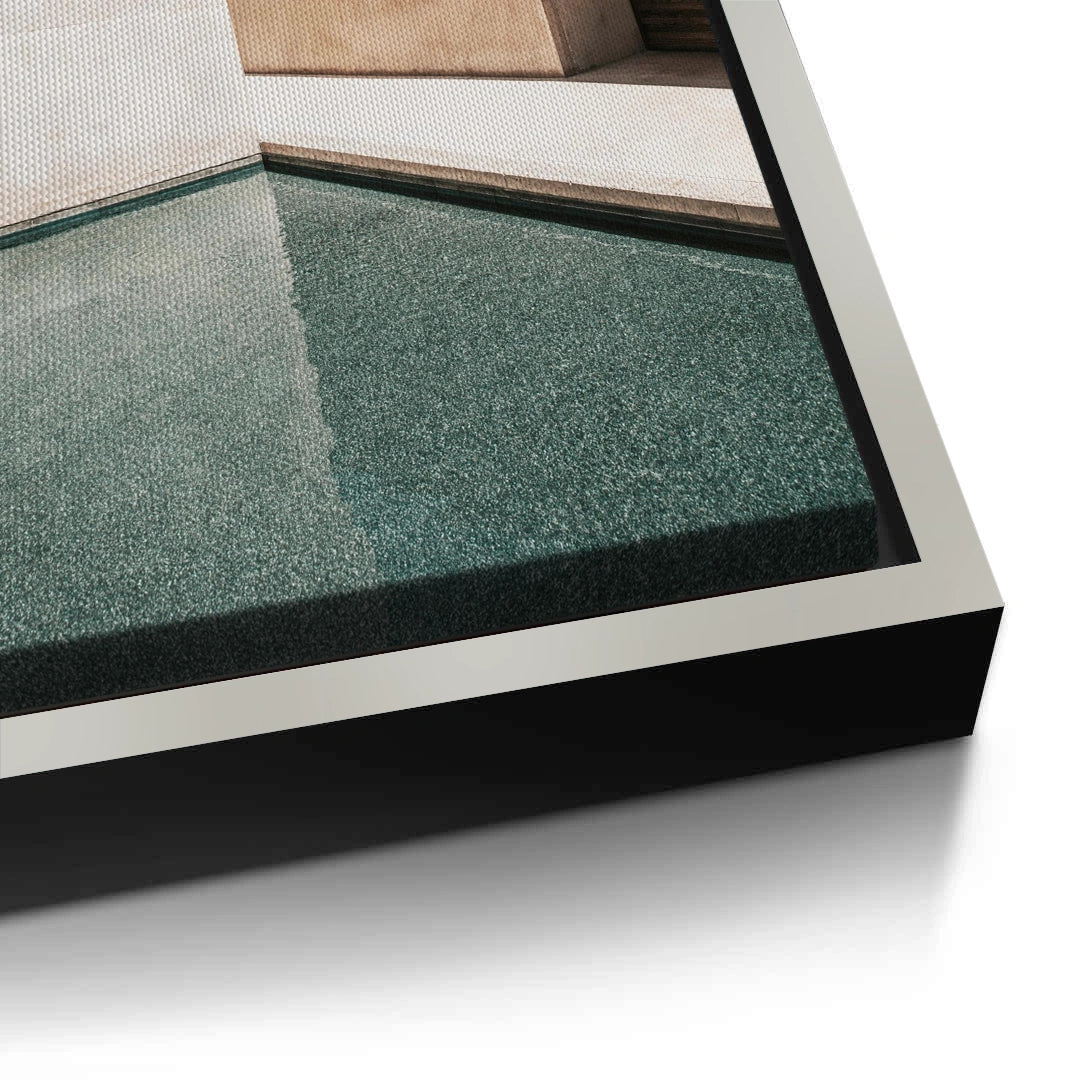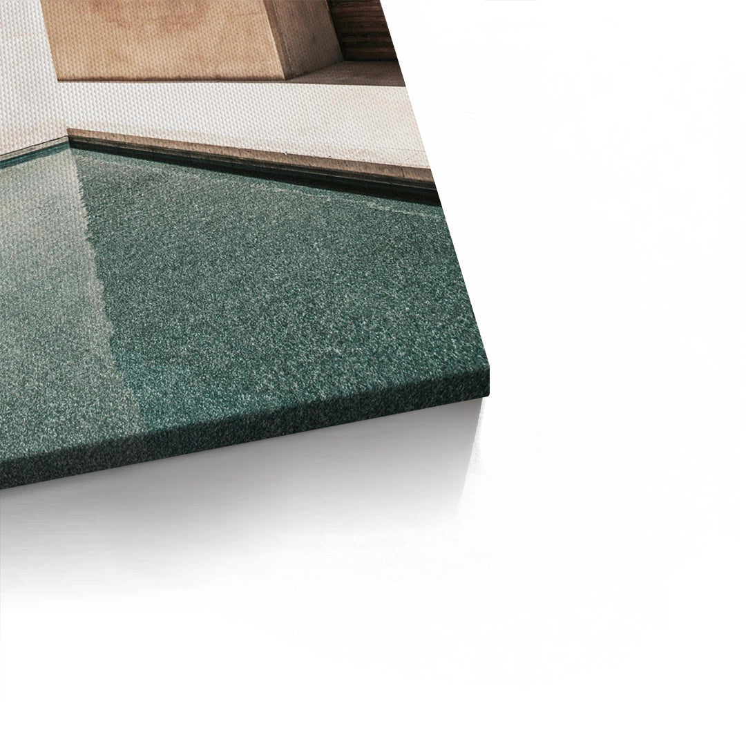 Embrace the beauty of raw form with the Minimalist Brutalist art print. This striking composition highlights the sharp, geometric lines of concrete architecture reflecting into a still, emerald-toned pool. The contrast between the solid, industrial walls and the fluid reflection creates a sense of profound calm and modern sophistication. Finished with our signature premium vertical texture, this print offers a high-end tactile finish that enhances the architectural details. It is a perfect choice for a contemporary office, a minimalist hallway, or a modern penthouse in Dubai.