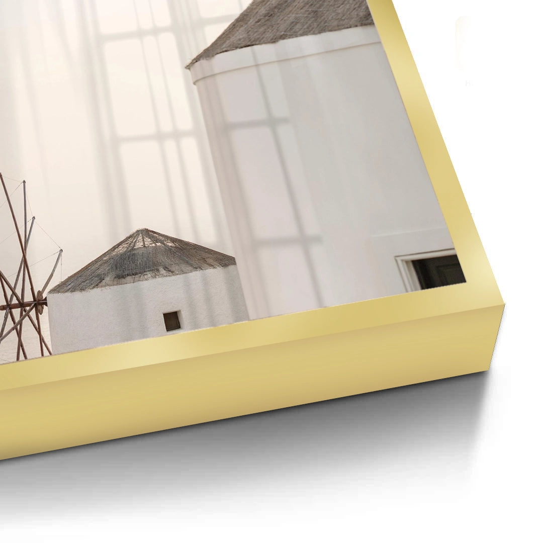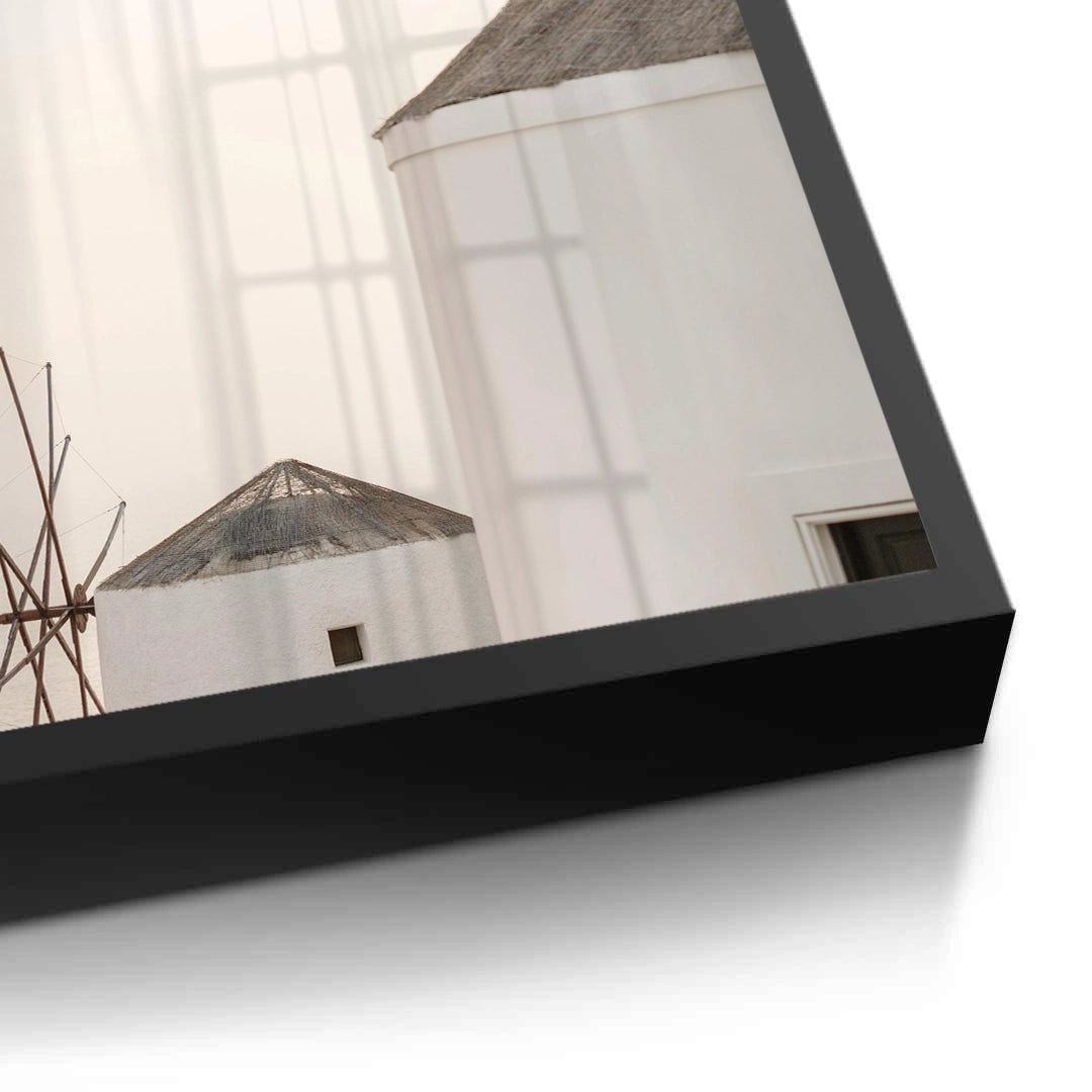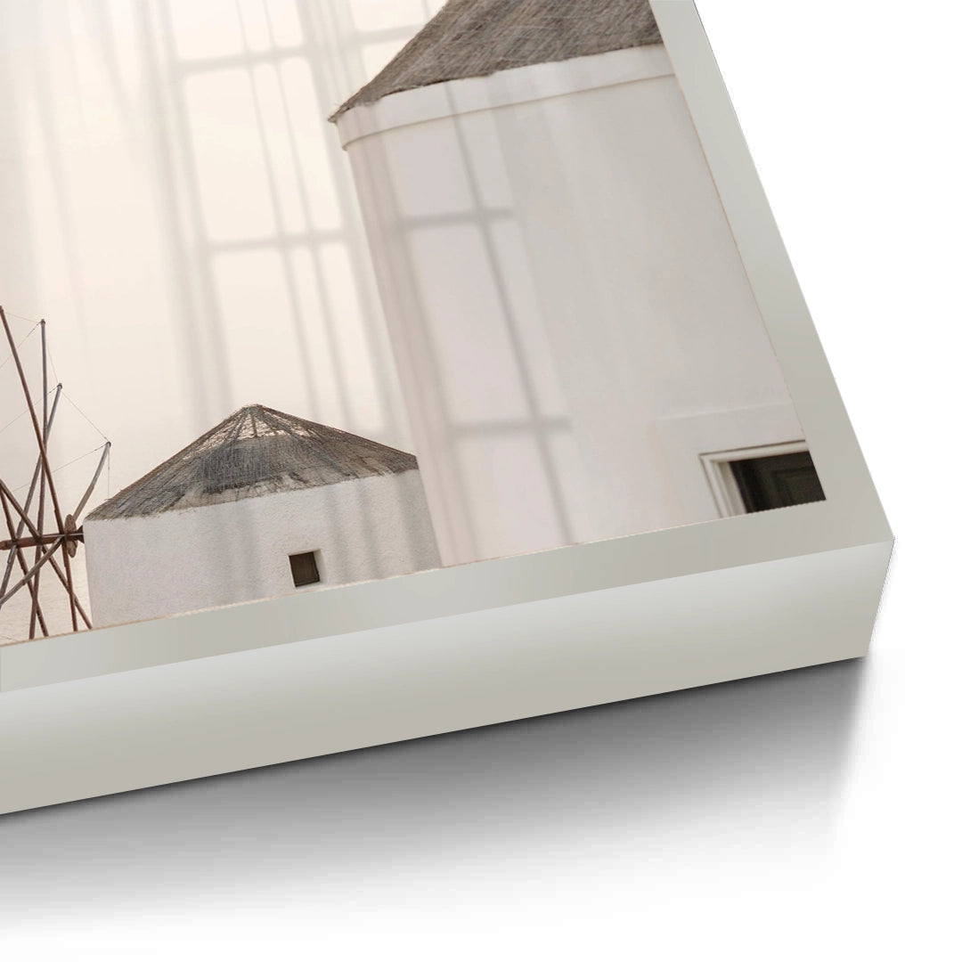Embrace the airy simplicity of the Aegean Sea with the Minimalist Greek Island art print. This sophisticated piece captures the poetic essence of traditional Greek windmills, featuring clean white cylindrical forms topped with rustic thatched roofs. The high-key composition and soft earthy accents evoke the sun-drenched tranquility of Mykonos or Santorini. Finished with our signature premium vertical texture, this print offers a high-end tactile feel that brings a bright, modern coastal vibe to any room. It is a perfect choice for a minimalist bedroom, a serene lounge, or a light-filled villa in Dubai.