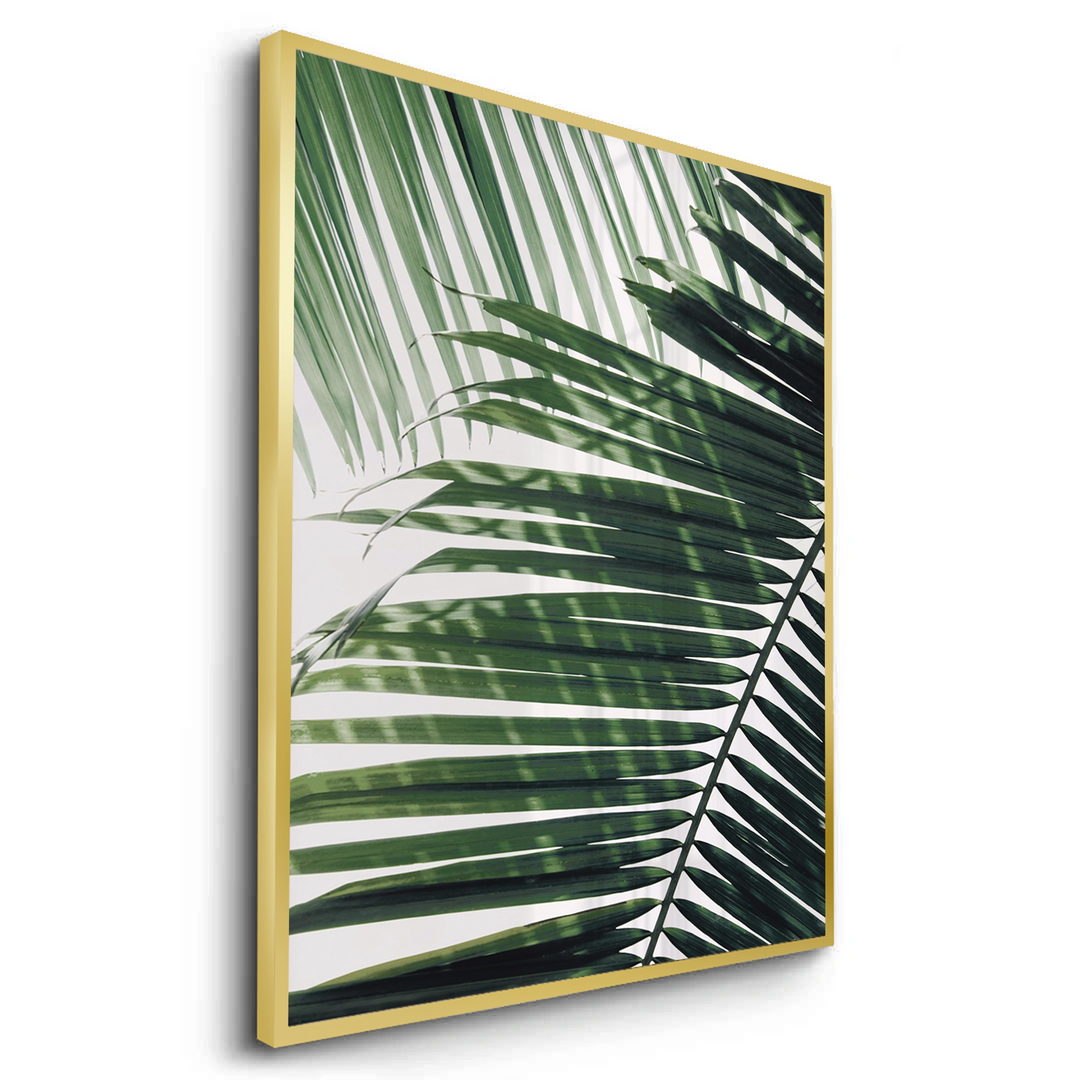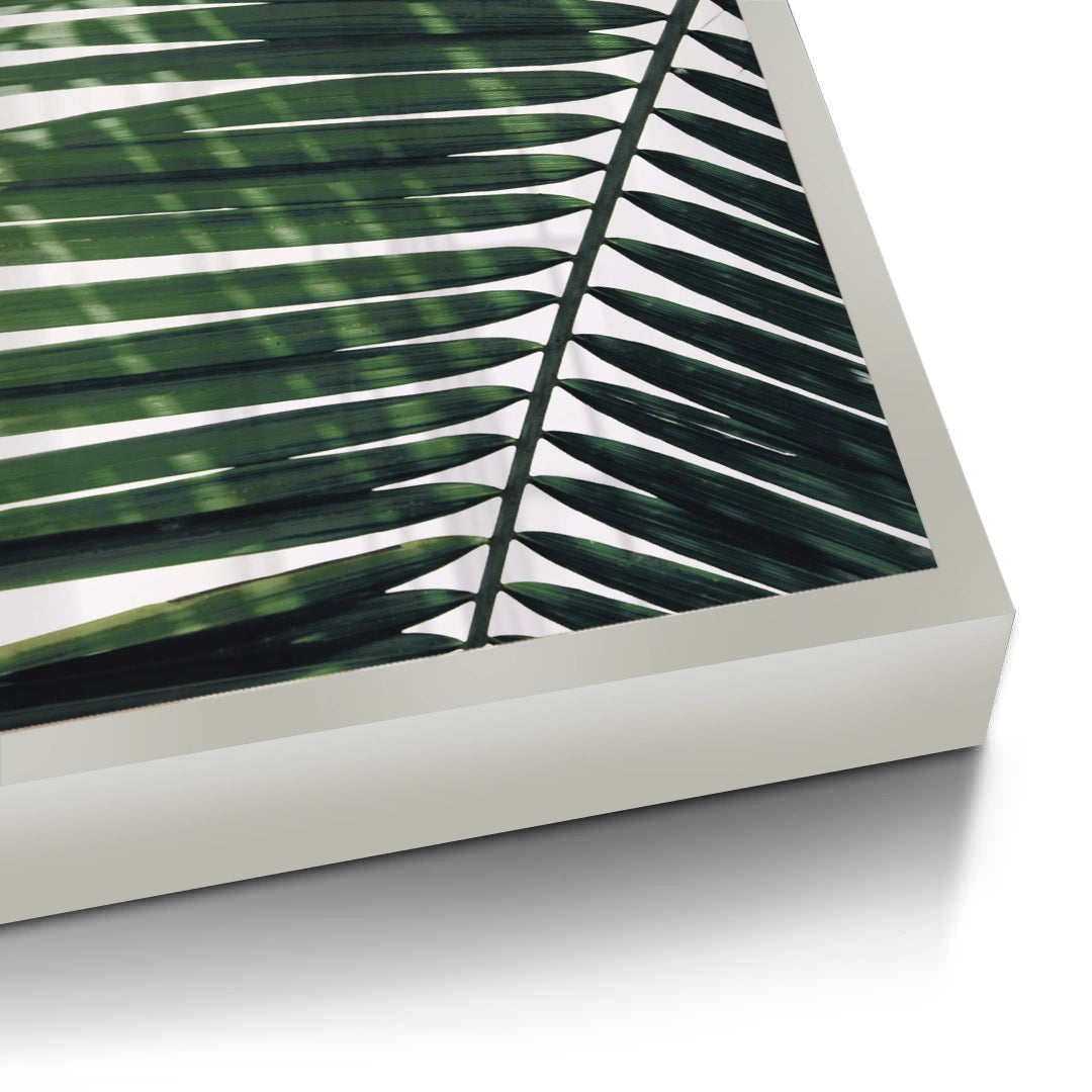 The striking Minimalist Palm Frond print is a highly stylized piece of tropical close-up photography. This canvas captures the lush, intricate details of an emerald green palm frond against a clean white backdrop. The artwork focuses on the dramatic contrast of deep green and white, using shadows and light to emphasize the leaf’s natural pattern. It is a perfect choice for adding crisp, natural energy and minimalist tropical style to a modern apartment or office space in Dubai.