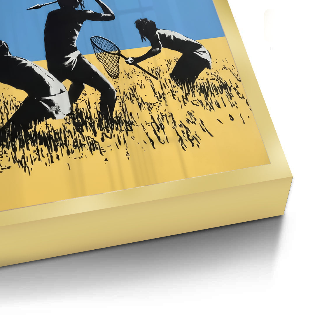 Re-evaluate modern survival with the Modern Hunter from Jasmine Art’s Banksy series. This witty silhouette-style print depicts ancient hunters targeting a stack of Amazon boxes and an e-scooter, offering a sharp critique on today’s consumer culture. The vibrant two-tone background and minimalist composition make it a striking focal point for any contemporary interior. Finished with our signature premium vertical texture, this print provides exceptional tactile depth and a high-end gallery finish. A thought-provoking and humorous addition for a modern lounge, a creative office, or a trendy home in Dubai.
