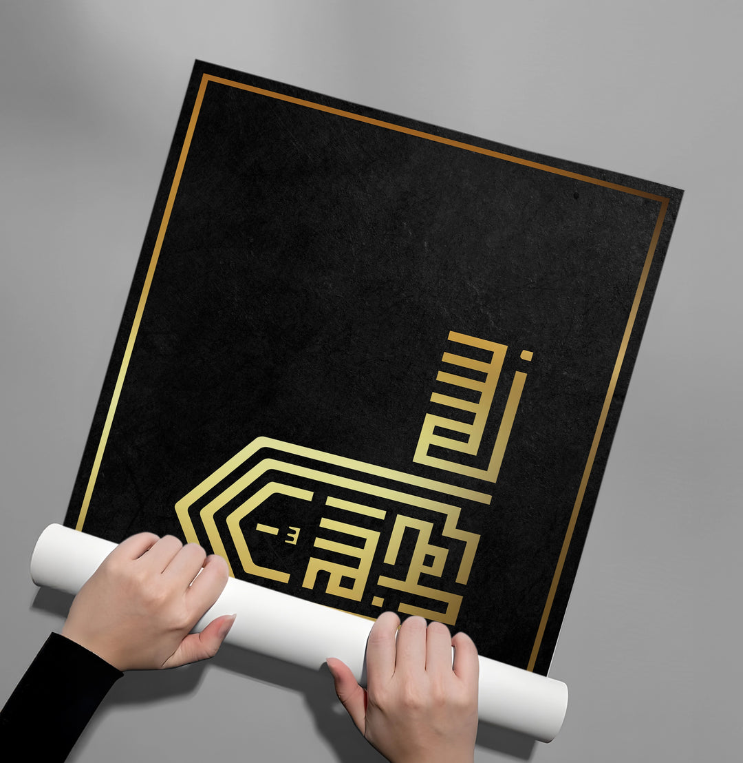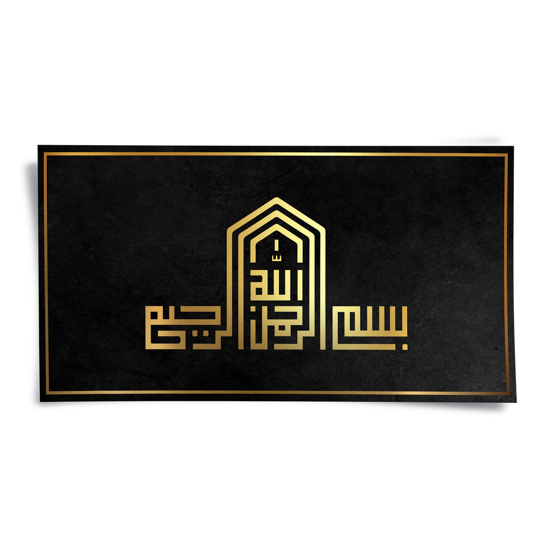 Elevate your home with the divine elegance of the Modern Kufic Bismillah from Jasmine Art’s Arabic Calligraphy collection. This masterful piece presents the "Bismillah" in a sophisticated geometric Kufic script, shaped into a stunning architectural arch. The striking contrast of radiant gold lettering against a rich, textured black background brings a regal and spiritual focal point to any modern space. Finished with our signature premium texture, this print offers exceptional tactile depth and a high-end gallery finish. A perfect spiritual accent for a formal Majlis, a luxury living room, or a welcoming entryway in Dubai.