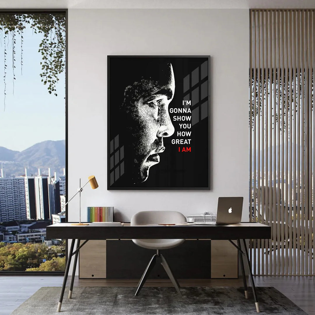 Grace, power, and unshakable confidence — Muhammad Ali captures the spirit of the greatest boxer of all time. This dynamic portrait pays tribute to Ali's legendary strength, both in and out of the ring. With bold strokes and striking contrasts, the artwork embodies his fighting spirit, charisma, and iconic presence. A timeless piece for those who admire resilience, courage, and greatness.