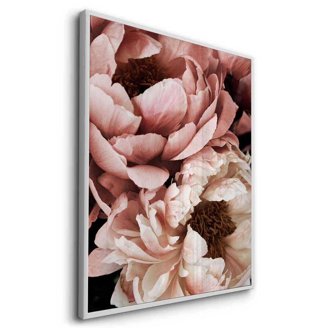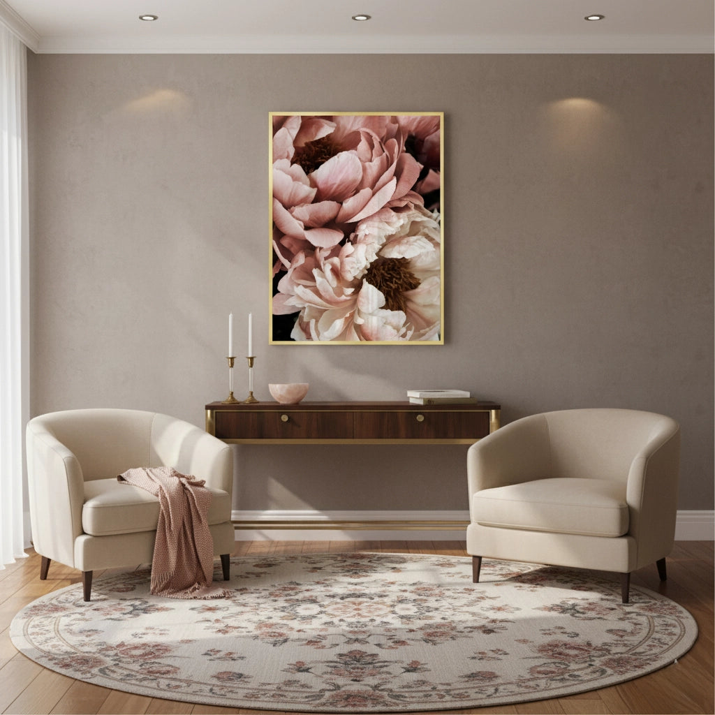 The romantic Moody Dusty Rose print is a luxurious piece of close-up botanical art. This canvas features the delicate layers of Peony blossoms captured in a deep, dramatic light. The color palette centers on rich dusty rose, mauve, and earthy brown tones, creating a cozy yet sophisticated moody floral aesthetic. This captivating piece is perfect for adding romantic drama and depth to a modern bedroom, dressing room, or sophisticated lounge area in Dubai.