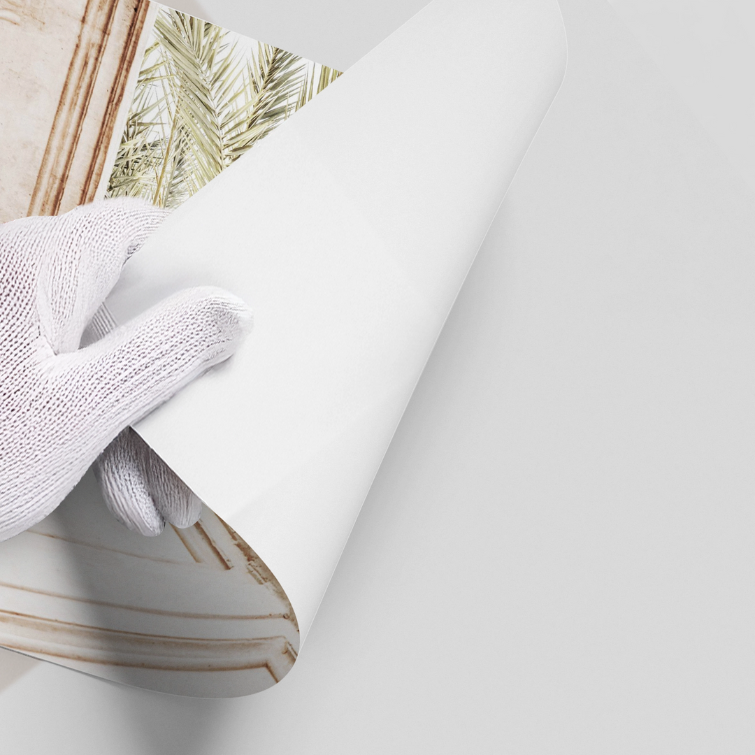 Celebrate the heritage of the Middle East with the Moroccan Arch art print. This elegant piece captures the intricate beauty of hand-carved scalloped arches set against a backdrop of lush, swaying palm fronds. The soft palette of sun-kissed beige and muted green evokes the tranquil atmosphere of a private riad or a luxury desert oasis. Finished with our signature premium vertical texture, this print offers a sophisticated tactile feel that adds depth to any wall. It is an exquisite choice for a formal Majlis, a serene bedroom, or any space celebrating cultural luxury in Dubai.