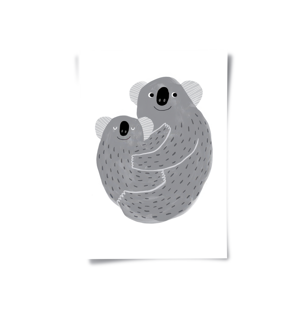 The heartwarming Mother and Child Koala Cuddle print is a beautiful celebration of love and comfort, perfect for any nursery. This stylish, minimalist illustration features two koalas in a tender, round embrace, symbolizing the bond between parent and child. Rendered in a calming monochromatic grey palette, this piece offers a sophisticated yet incredibly sweet aesthetic. It's the ideal artwork to add a gentle, modern, and loving touch to a gender-neutral nursery or child’s room in Dubai.