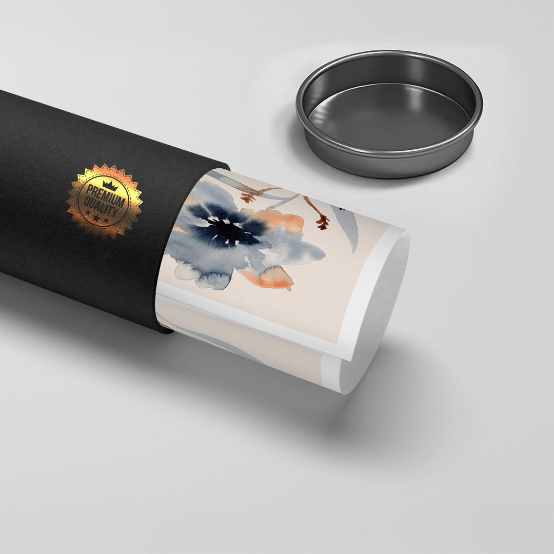 The tranquil Muted Indigo and Rust Floral print is an exquisite example of abstract watercolor art. This canvas features a stylized flower rendered in soft, blended hues of deep indigo blue and warm rustic orange. The botanical element is elegantly presented on a serene, neutral background, making the delicate watercolor textures truly stand out. It is an ideal piece for adding a touch of calm, artistic sophistication and organic beauty to a modern bedroom, hallway, or office in Dubai.