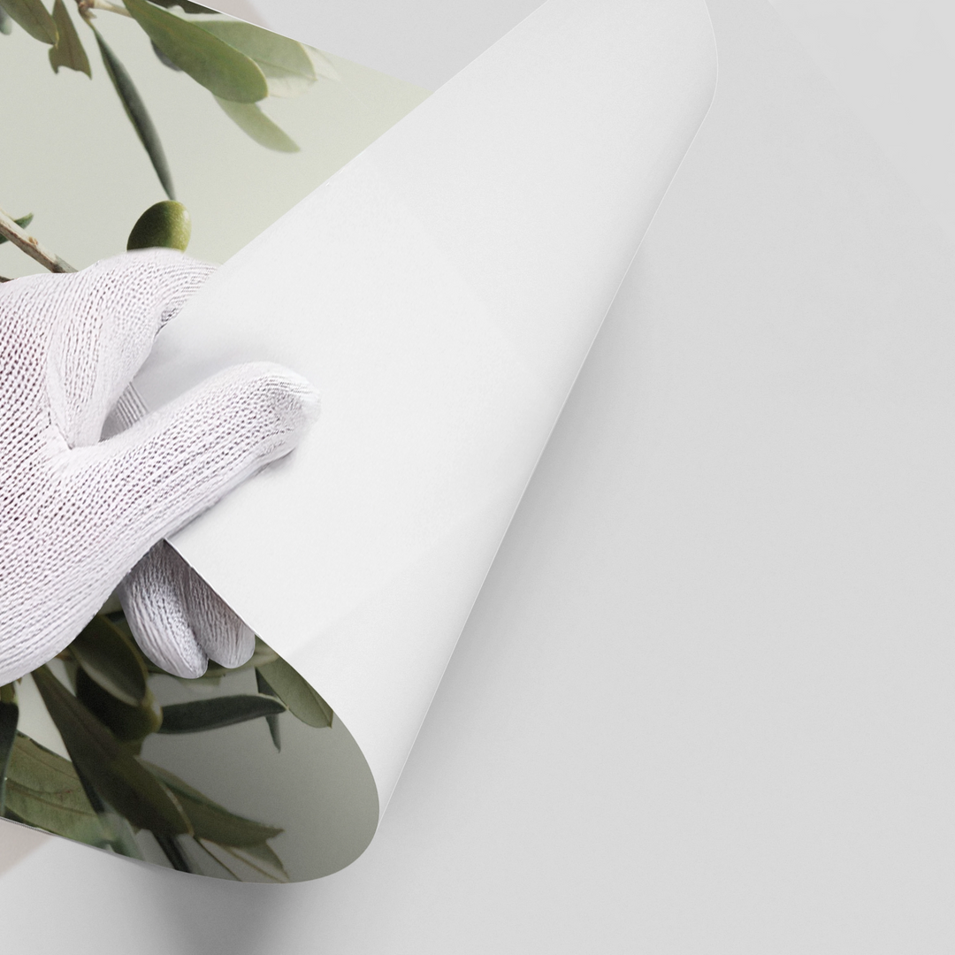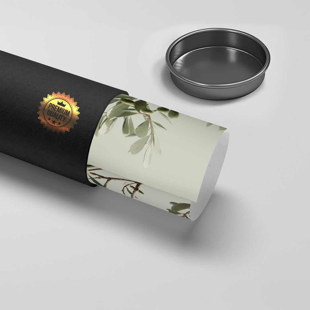 The fresh Olive Branch print captures the simple, enduring beauty of the Mediterranean. This detailed photographic canvas showcases a close-up of an olive branch laden with small green olives and dusty green leaves. Set against a soft, light grey-green background, the image offers a sense of calmness, natural authenticity, and subtle color. It is an ideal piece for bringing a touch of Mediterranean serenity and botanical freshness to a kitchen, dining area, or sunlit room in Dubai.