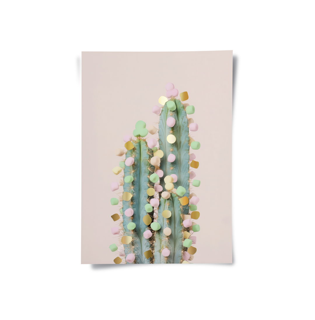 This modern print features a charming cactus rendered in soft, trendy pastel tones. The Pastel Cactus is a playful yet sophisticated piece that adds a touch of desert chic to a contemporary nursery or playroom in Dubai.