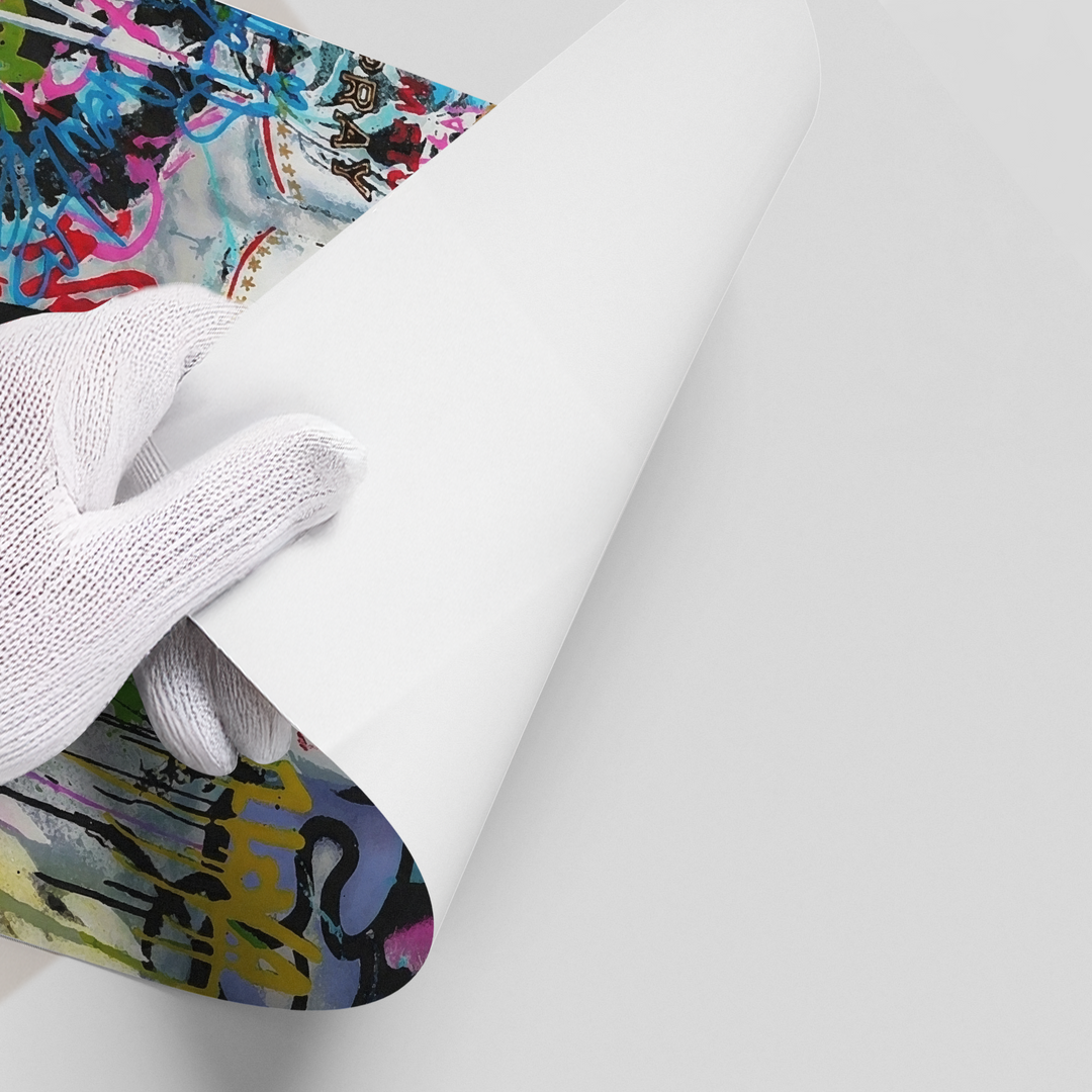 Merge science with street activism in the Peace Equals Love art print from Jasmine Art’s Banksy-inspired collection. This vibrant piece features Albert Einstein holding a peaceful protest sign against a chaotic backdrop of neon graffiti and iconic Campbell’s soup cans. The contrast between the monochromatic genius and the colorful urban mess creates a powerful message of humanity. Finished with our signature premium vertical texture, this print offers a high-end gallery feel with incredible tactile depth. A bold, intellectual statement for a modern home office, library, or stylish living room in Dubai.