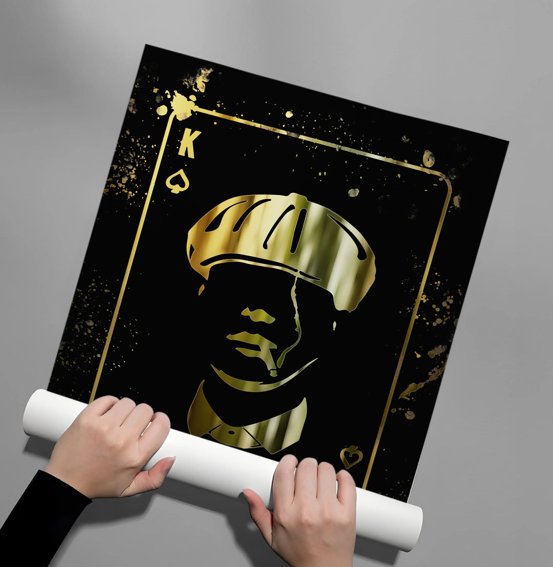 Inspired by the iconic series, Peaky Blinder captures the dark charm, sharp style, and raw intensity of 1920s Birmingham’s most notorious gang. With moody tones, vintage textures, and striking character presence, this piece brings a cinematic edge and timeless swagger to any space. Perfect for fans of classic rebellion, tailored grit, and fearless ambition.