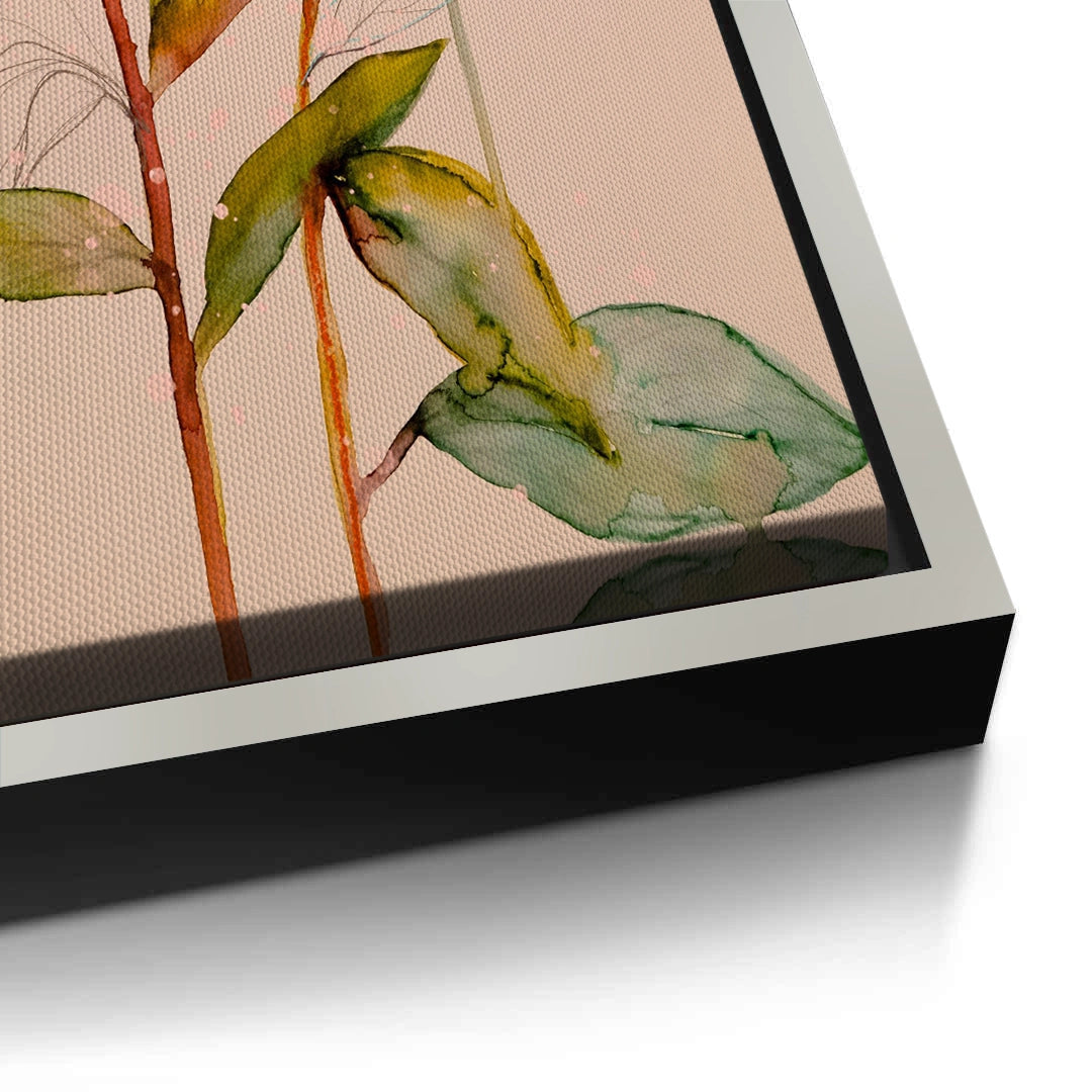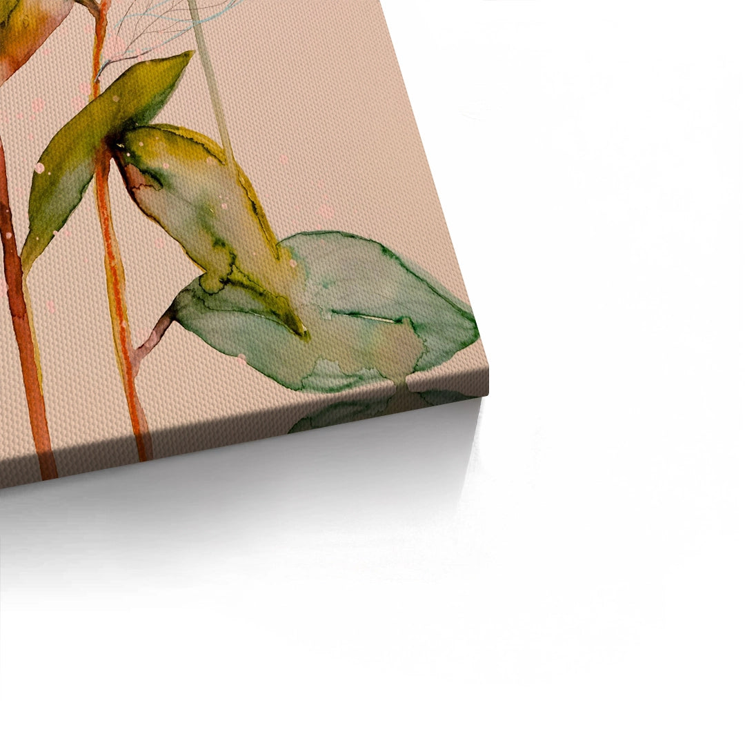 The romantic Pink Peony print is a beautiful expression of abstract floral watercolor art. This canvas features two full, lush Peony blooms rendered in sweeping, vibrant washes of soft pink, blush, and deep magenta. The delicate green leaves and long stems bring a natural balance to the composition. This piece offers a dreamy, artistic touch and timeless elegance, perfect for enhancing a chic bedroom, dressing area, or living room in Dubai.