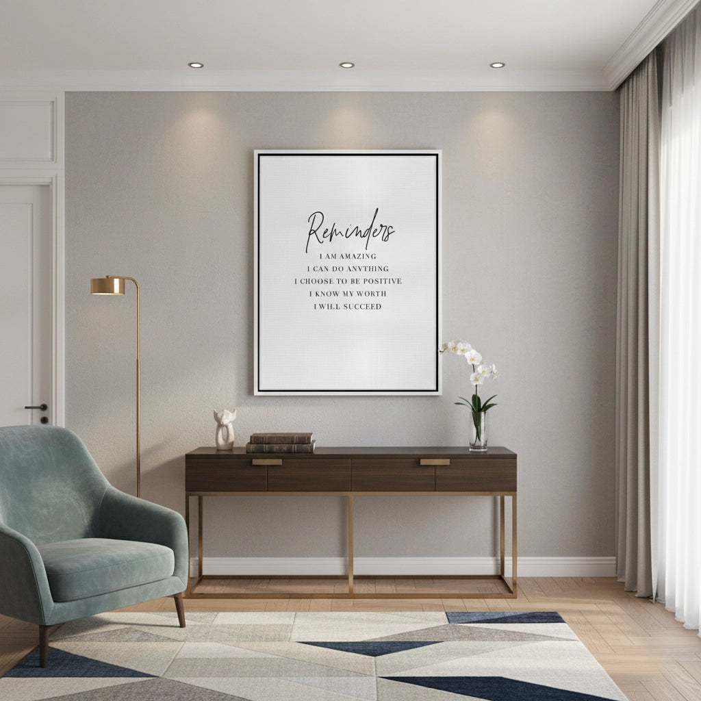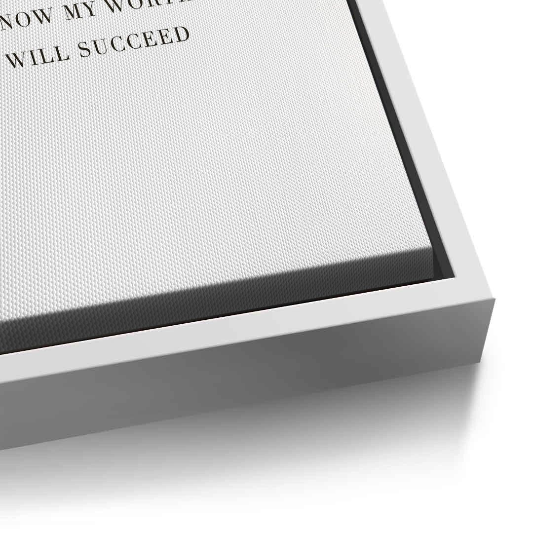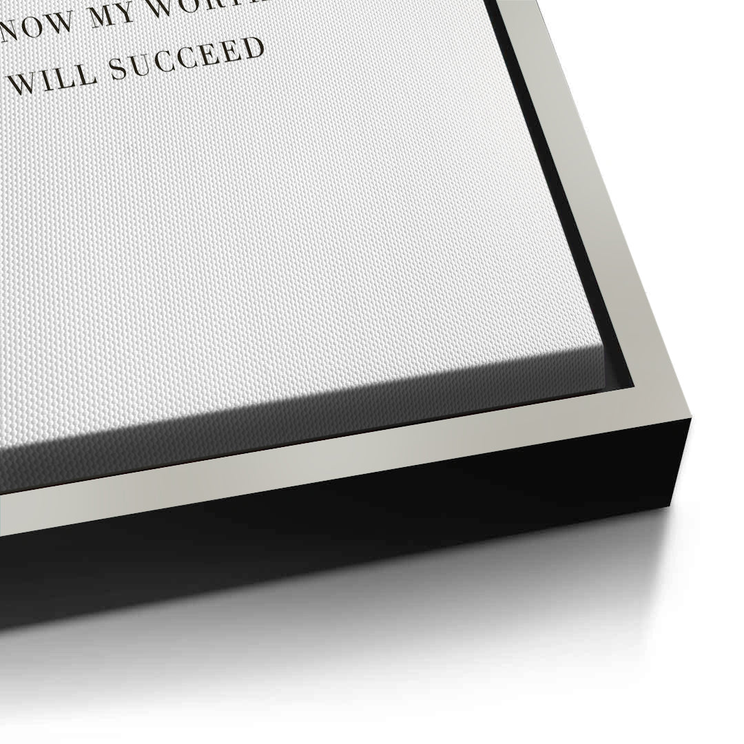 Start your day with self-love and confidence with the Positive Affirmations art print from Jasmine Art. This minimalist piece features a series of empowering reminders like "I know my worth" and "I will succeed," beautifully laid out in a mix of elegant script and classic serif fonts. The clean, monochrome design brings a sense of clarity and peace to your personal space. Finished with our signature premium vertical texture, this print offers a high-end tactile finish that radiates quality and sophistication. An essential addition to a dressing room, a home office, or a sanctuary in Dubai for daily inspiration.