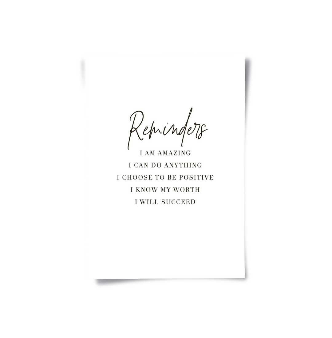 Start your day with self-love and confidence with the Positive Affirmations art print from Jasmine Art. This minimalist piece features a series of empowering reminders like "I know my worth" and "I will succeed," beautifully laid out in a mix of elegant script and classic serif fonts. The clean, monochrome design brings a sense of clarity and peace to your personal space. Finished with our signature premium vertical texture, this print offers a high-end tactile finish that radiates quality and sophistication. An essential addition to a dressing room, a home office, or a sanctuary in Dubai for daily inspiration.