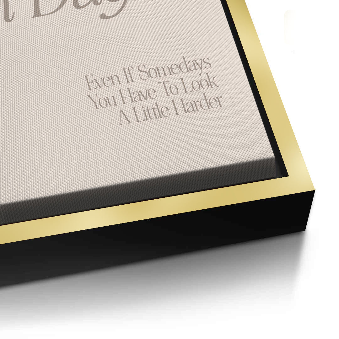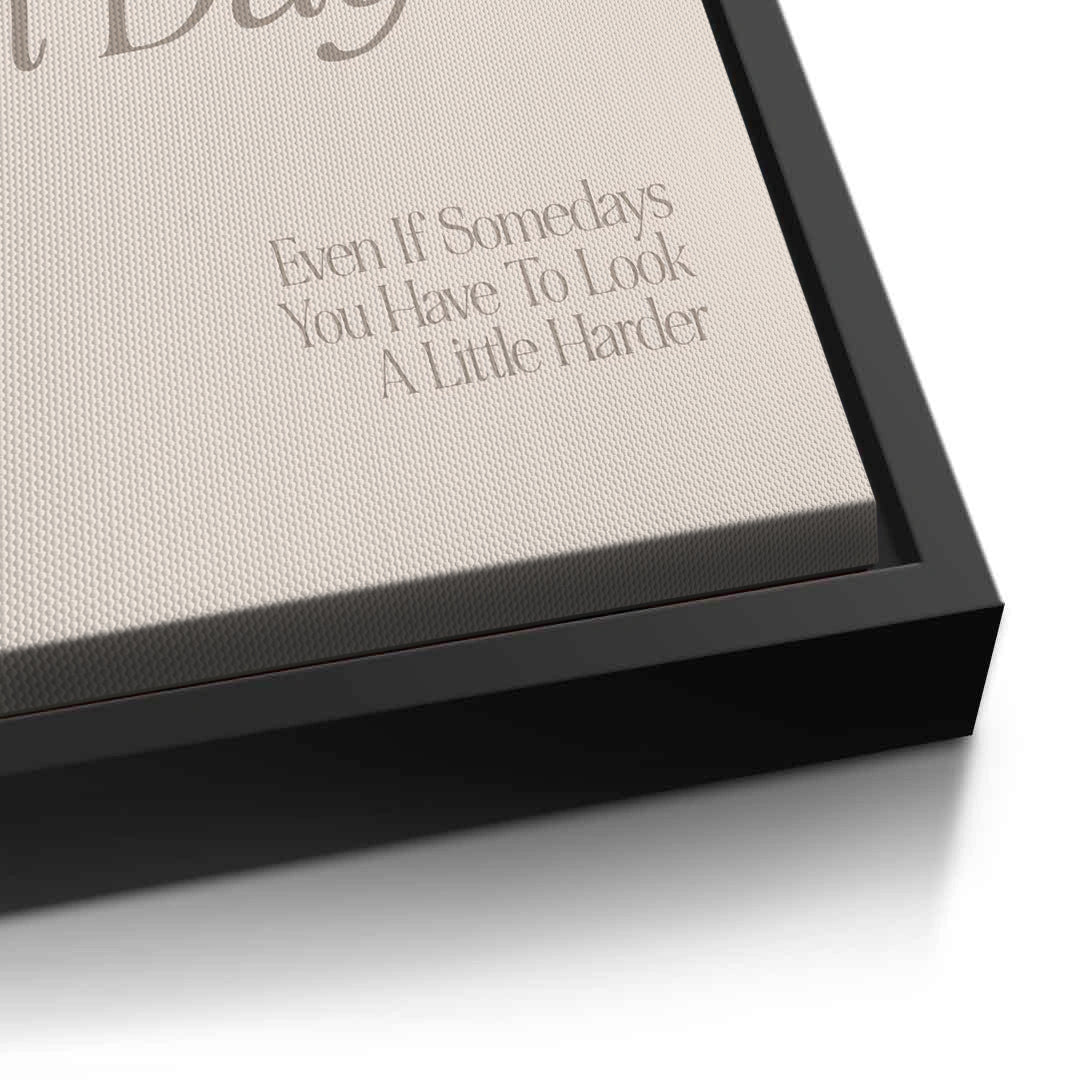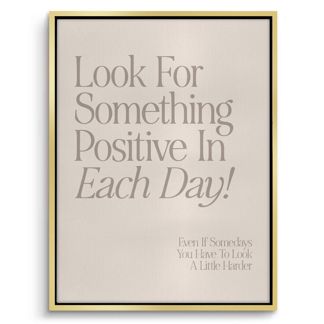 The serene Positive Day - Minimalist Motivational Typography print offers a gentle yet important daily affirmation. The central quote, "Look For Something Positive In Each Day!", is elegantly presented in a subtle grey/taupe Serif font, maintaining a sophisticated, muted color palette. A secondary line adds a thoughtful, inspiring touch. Set against a soft, textured off-white canvas, this minimalist design fits seamlessly into virtually any modern luxury interior. Ideal for adding a calming, positive, and chic accent to a bedroom, study, or sophisticated living area in Dubai.