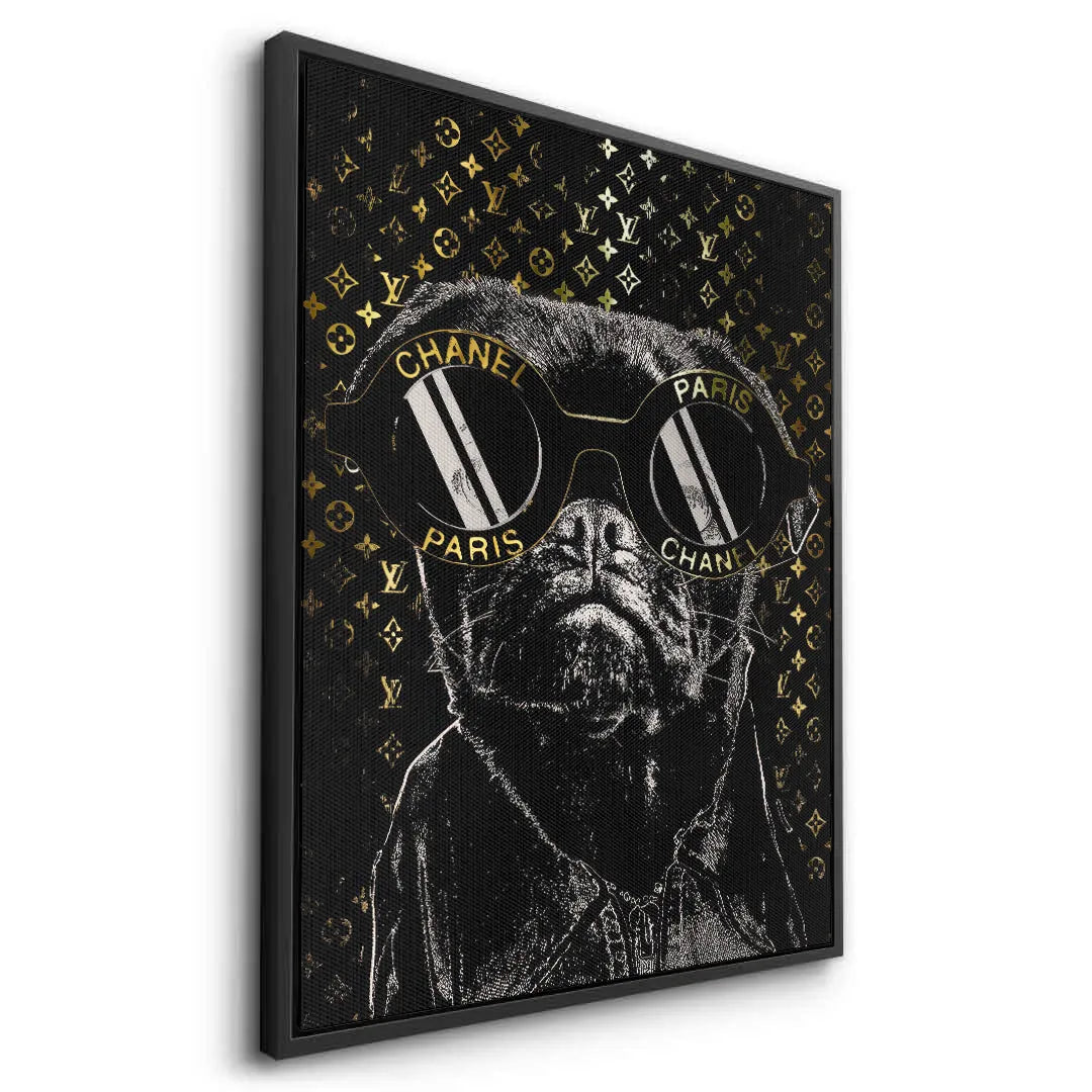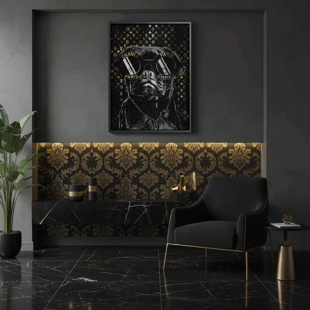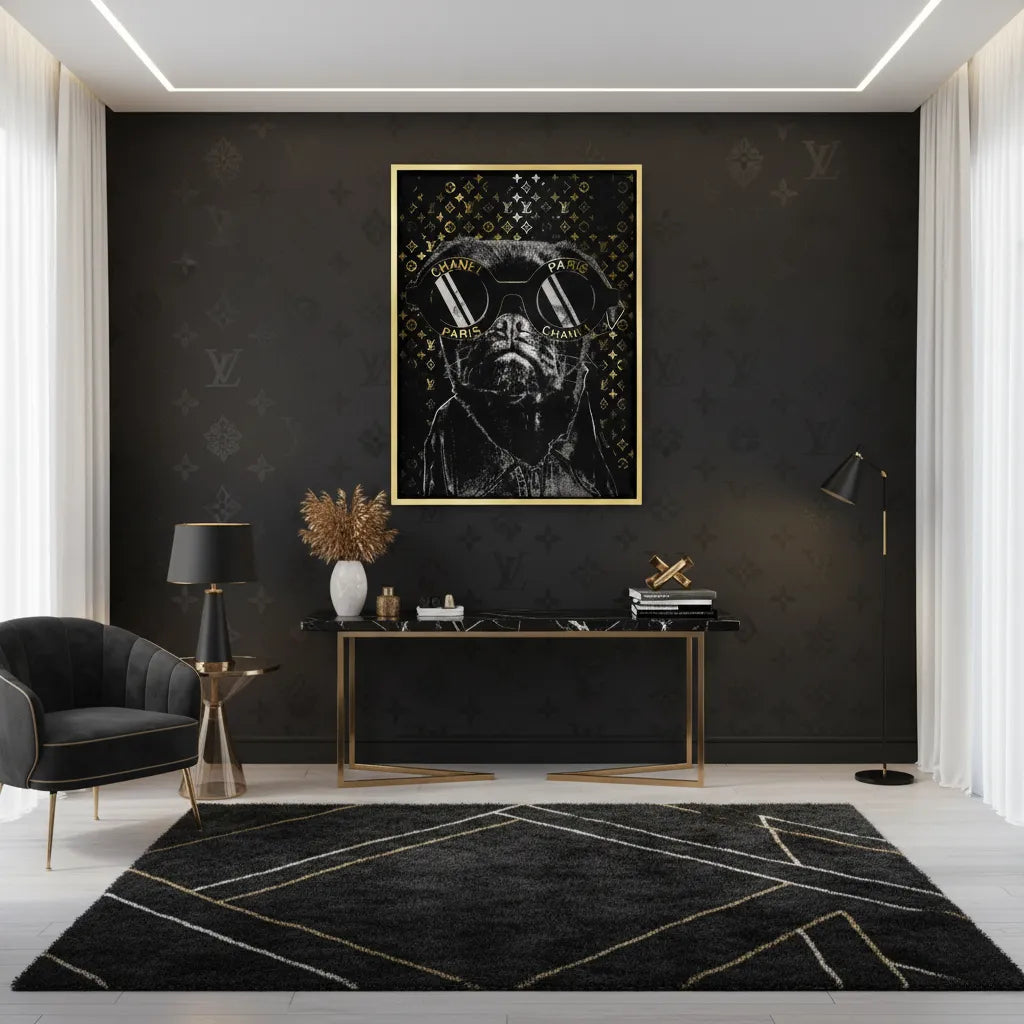 Meet the epitome of pet portrait luxury! This hilarious and chic piece features a Pug in iconic Chanel Sunglasses, capturing a personality that is both fierce and funny. Printed on gallery-grade canvas, this art is guaranteed to be a conversation starter and a true reflection of bold style.
