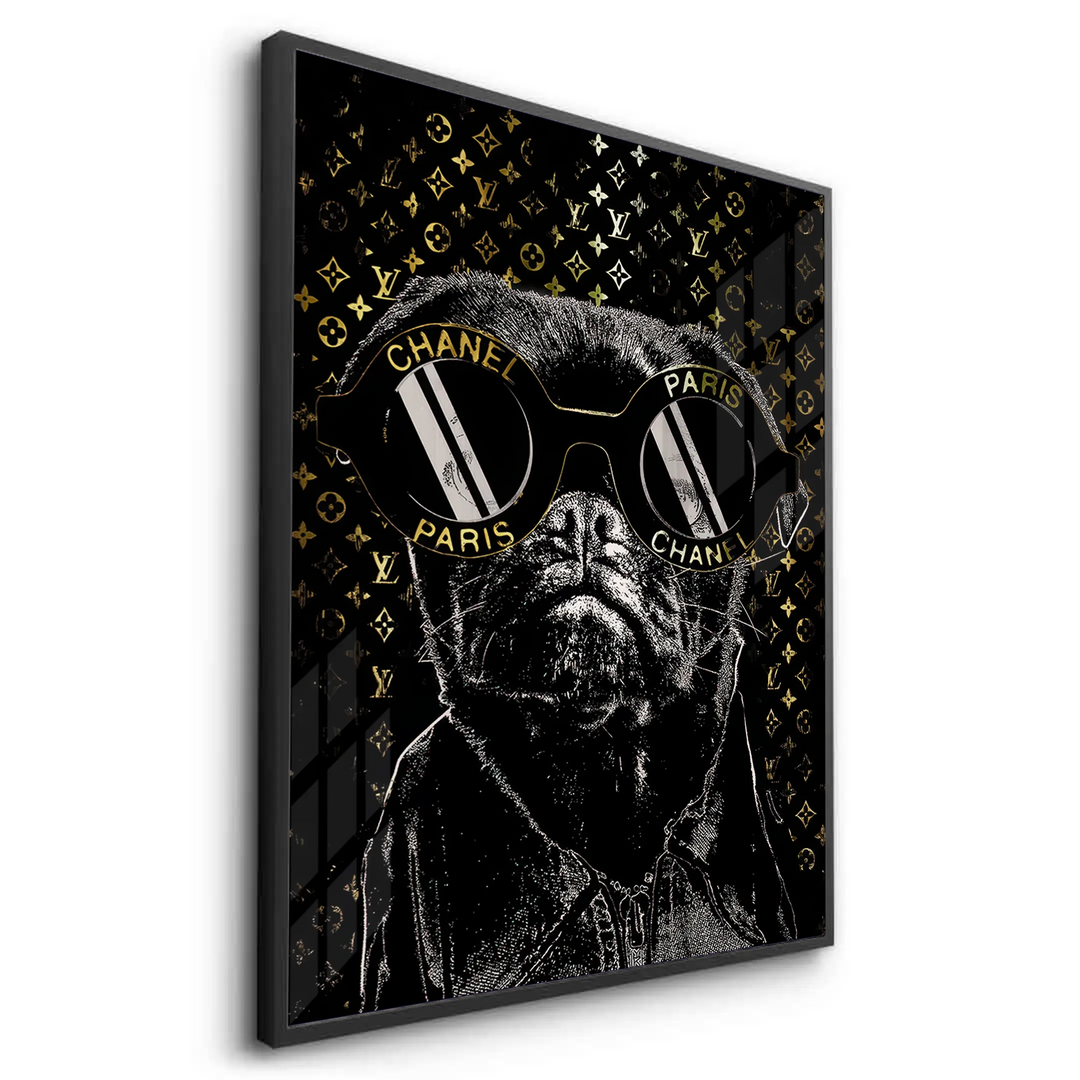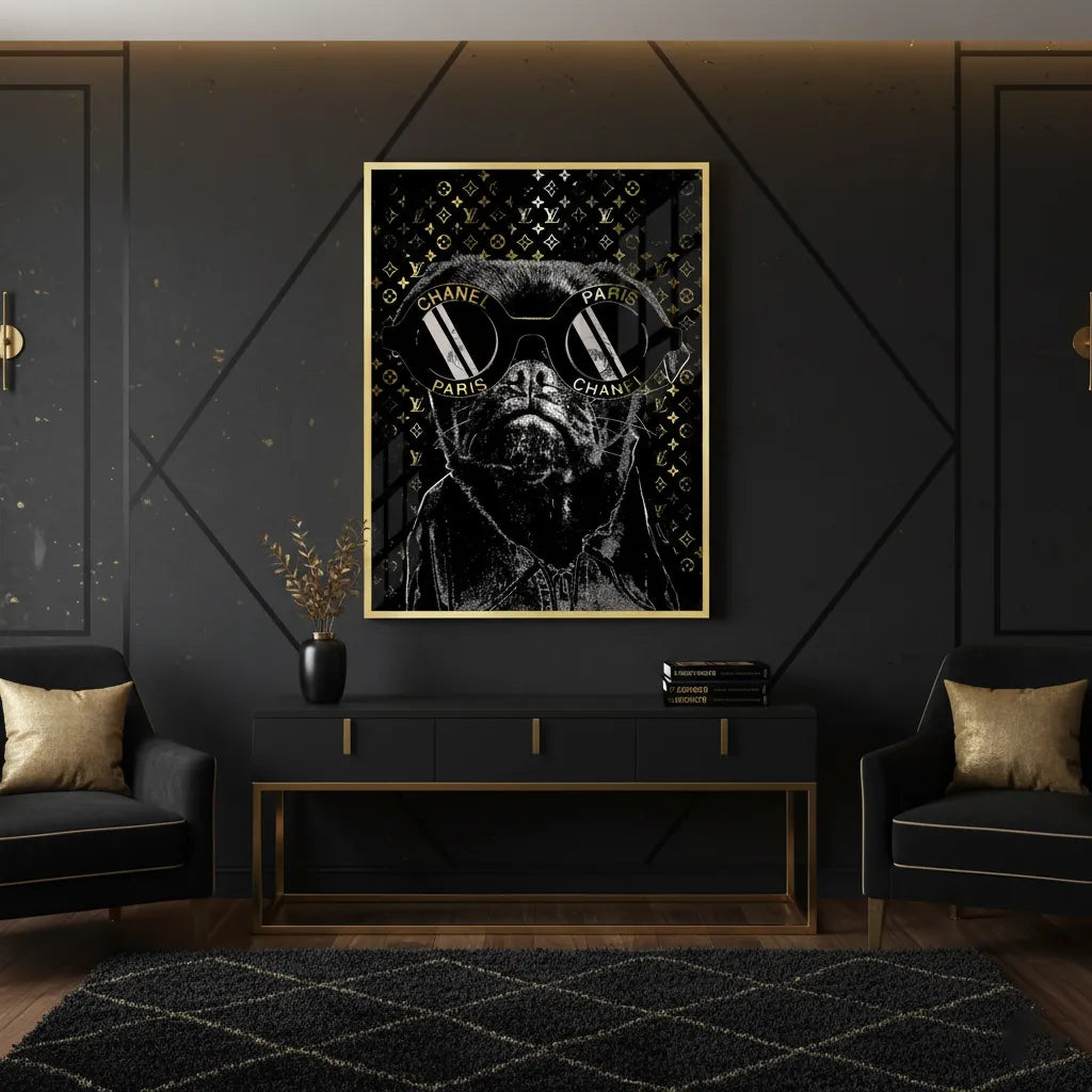 Meet the epitome of pet portrait luxury! This hilarious and chic piece features a Pug in iconic Chanel Sunglasses, capturing a personality that is both fierce and funny. Printed on gallery-grade canvas, this art is guaranteed to be a conversation starter and a true reflection of bold style.