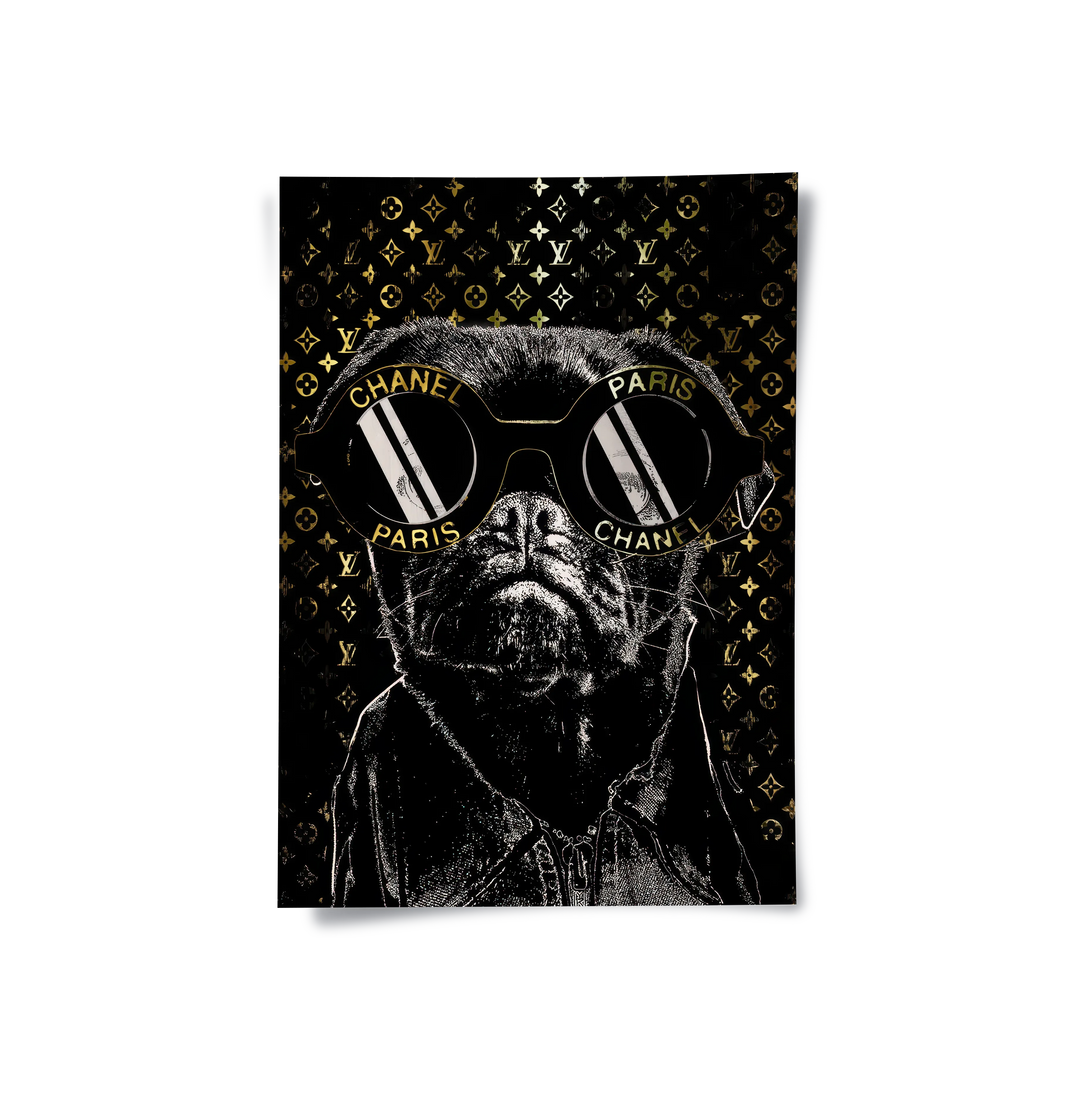 Meet the epitome of pet portrait luxury! This hilarious and chic piece features a Pug in iconic Chanel Sunglasses, capturing a personality that is both fierce and funny. Printed on gallery-grade canvas, this art is guaranteed to be a conversation starter and a true reflection of bold style.