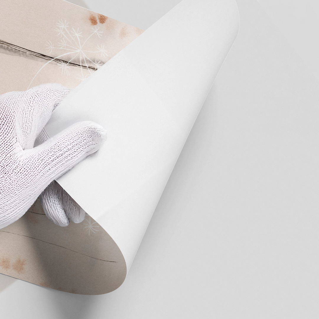 The delicate Queen Anne's Lace print is a serene piece of abstract watercolor botanical art. This canvas features the intricate, lace-like pattern of the Queen Anne's Lace flower, rendered in contrasting styles: a deep, moody sepia wash and a soft, airy white silhouette. Set against a soft blush/beige background, this artwork perfectly blends natural simplicity with a touch of rustic, romantic elegance. It is an excellent choice for adding a calm, earthy, and sophisticated touch to a sunlit room or gallery wall in Dubai.
