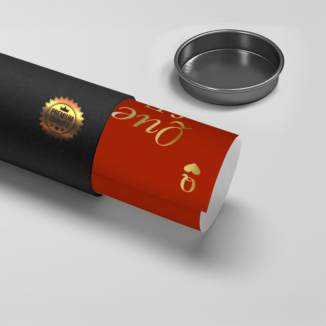 The striking Queen of Everything - Gold Playing Card Typography print is an elegant and bold declaration of feminine power. Inspired by the classic Queen of Hearts playing card, the piece features the confident phrase "Queen of Every Thing" in luxurious metallic gold italic Serif typography. The design is beautifully enhanced by matching gold 'Q' and heart symbols in the corners. Set against a vibrant, deep reddish-orange canvas with a subtle ribbed texture, this artwork creates a high-contrast, glamorous, and empowering focal point. Ideal for a dressing room, vanity area, or stylish bedroom in Dubai.