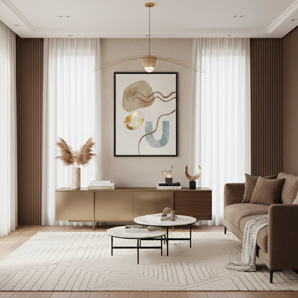Elevate your interior with the Sand & Gold Abstract art print from Jasmine Art’s Bohemian series. This contemporary masterpiece combines soft organic shapes in sand beige and slate blue with a striking metallic gold accent. The fluid lines and minimalist composition create a sense of serene movement and modern luxury. Finished with our signature premium vertical texture, this print offers a sophisticated tactile finish and high-end gallery depth. A perfect statement piece for a luxury master suite, a modern office, or a chic minimalist lounge in Dubai.
