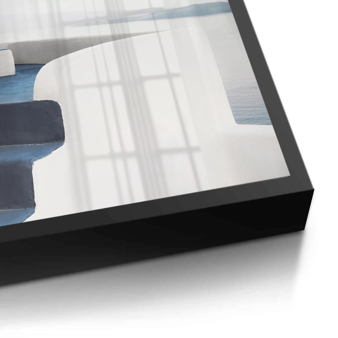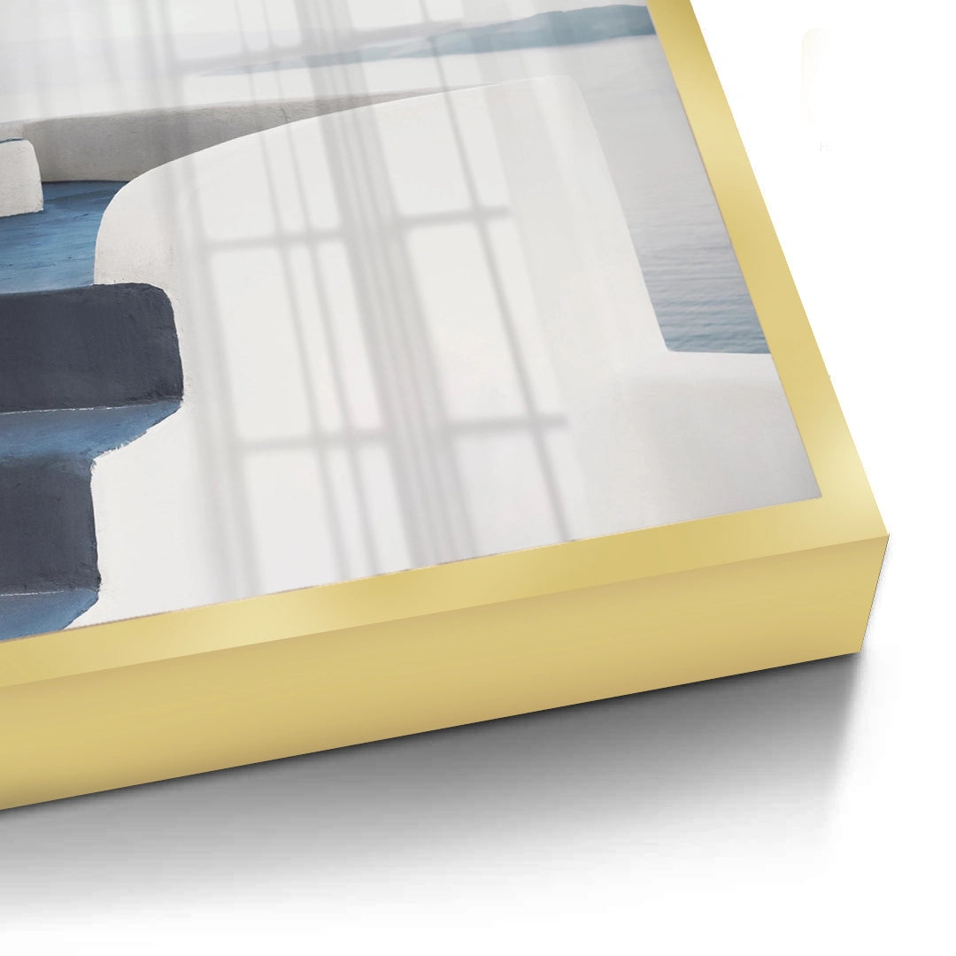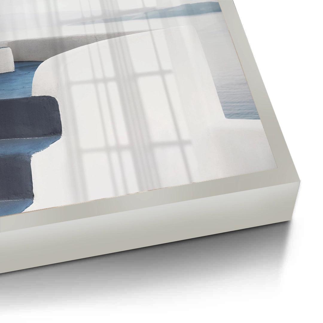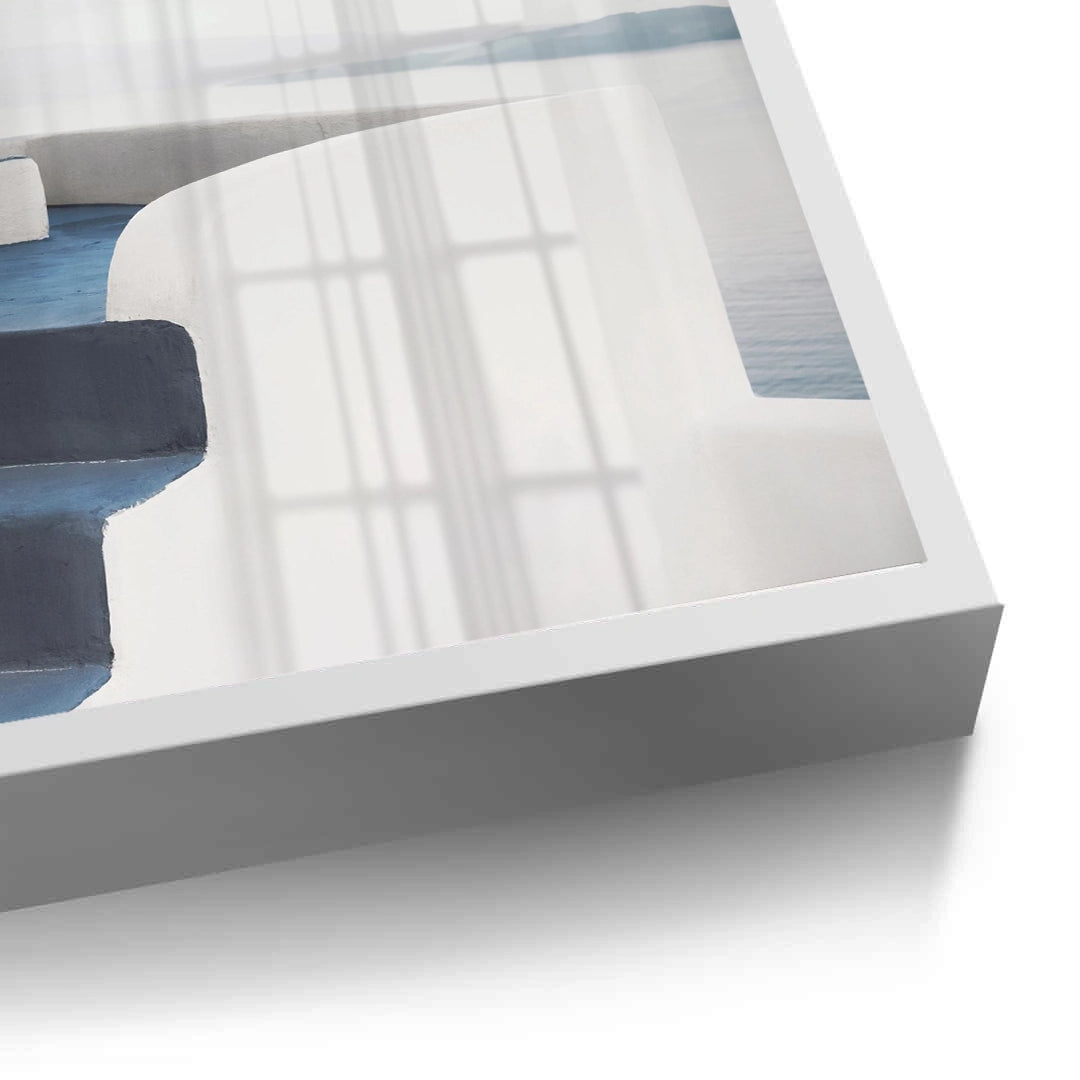 Refresh your interior with the serene Santorini Blue Stairs print, a stunning piece of minimalist architectural art. This artwork captures the iconic essence of Greece, featuring vibrant blue steps winding through crisp, white-washed walls. The composition flows into a soft, misty coastal horizon, bringing a breath of fresh Mediterranean air to your walls. Finished with a premium vertical texture, this print offers a sophisticated, high-end feel. It is the perfect choice for adding a modern, calming, and coastal vibe to a bright living room, a contemporary bedroom, or a chic office space in Dubai.