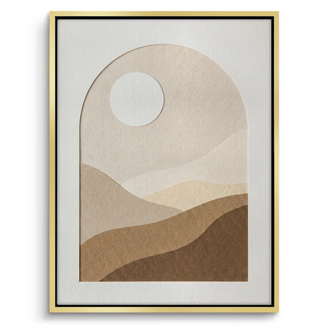 Bring a sense of peace to your home with the Serene Desert Horizon from Jasmine Art’s Bohemian series. This elegant piece features a layered desert landscape framed within a modern arch, showcasing rolling dunes and a soft sun in beautiful earthy gradients. Its minimalist composition and warm neutral tones create a sophisticated, calming atmosphere in any room. Finished with our signature premium vertical texture, this print offers exceptional tactile depth and a high-end gallery finish. A perfect serene addition for a modern bedroom, a minimalist living area, or a luxury office in Dubai.