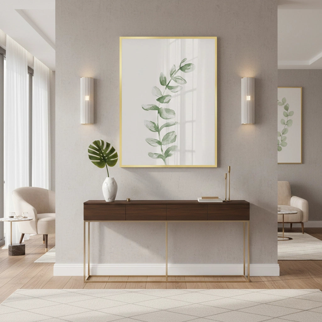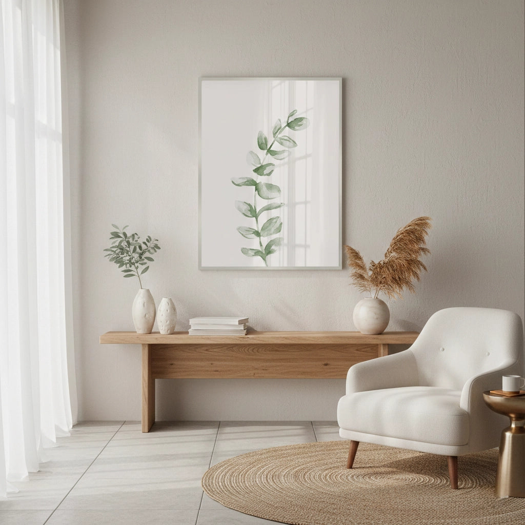 Bring a sense of tranquility to your home with the Soft Green Watercolor Leaf from Jasmine Art’s Bohemian series. This delicate botanical print features a single branch of watercolor leaves in soothing shades of sage and moss green. Its clean, minimalist aesthetic is designed to create a calm and refreshing atmosphere in any modern space. Finished with our signature premium vertical texture, this print offers exceptional tactile depth and a high-end gallery finish. A perfect zen-inspired accent for a minimalist bedroom, a spa-like bathroom, or a peaceful office in Dubai.