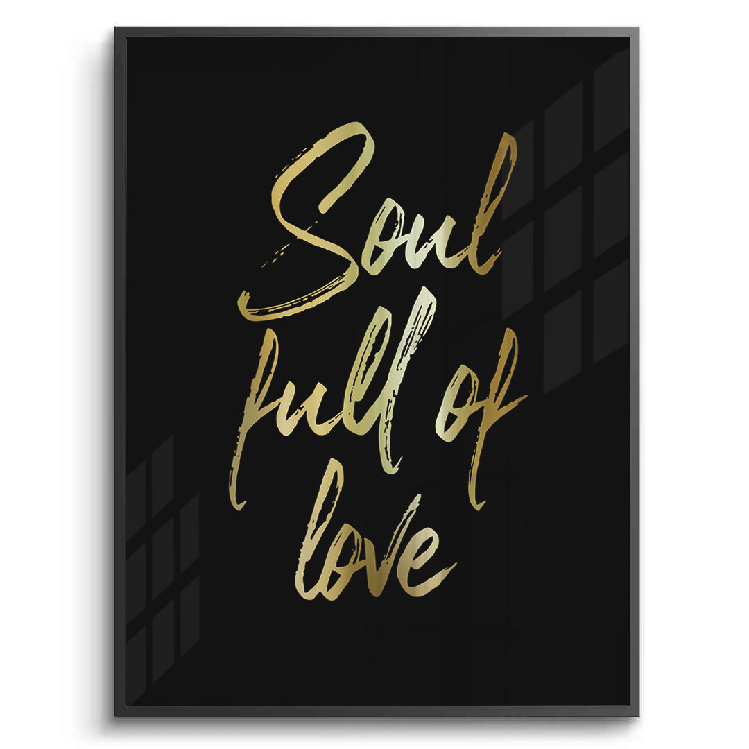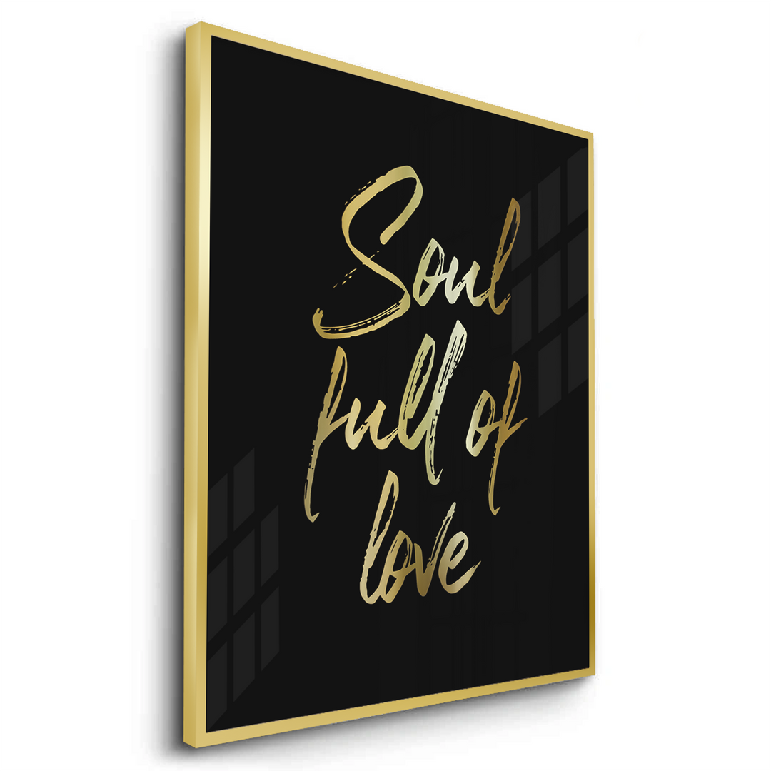 The elegant Soul Full of Love - Gold Script Typography print is a luxurious celebration of deep emotion. The romantic phrase "Soul full of love" is captured in flowing, expressive brush-stroke script with a brilliant metallic gold finish. The dramatic gold calligraphy is set against a deep black canvas with a subtle ribbed texture, ensuring a high-contrast and sophisticated aesthetic. This piece is ideal for adding a bold, passionate, and minimalist romantic touch to a master bedroom, dressing area, or contemporary living space in Dubai.