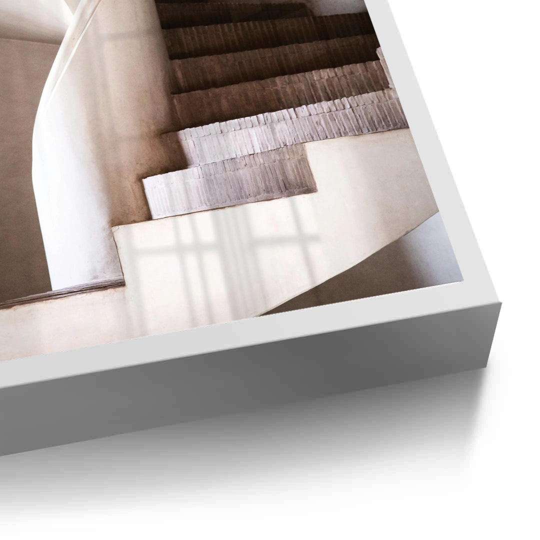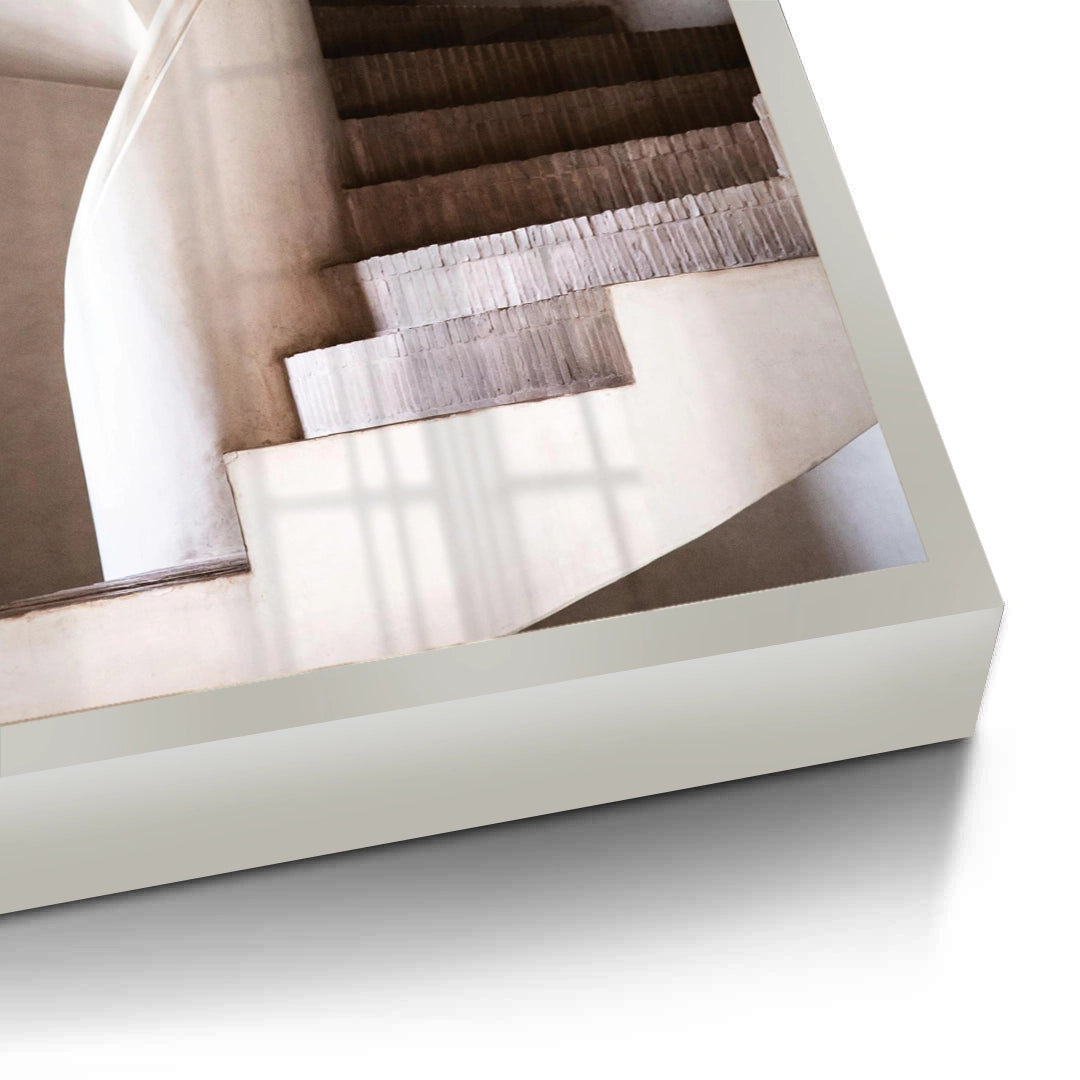 Celebrate the beauty of modern design with the Spiral Staircase art print. This stunning piece focuses on the fluid, sculptural curves of a contemporary staircase, rendered in a soothing palette of warm beige and earthy neutrals. The abstract composition transforms a structural element into a serene work of art, perfect for creating a sophisticated focal point. Featuring our signature fine vertical texture, this print provides a high-end tactile finish that enhances its organic appeal. It is an ideal addition to a minimalist living room, a modern hallway, or a luxurious executive office in Dubai.