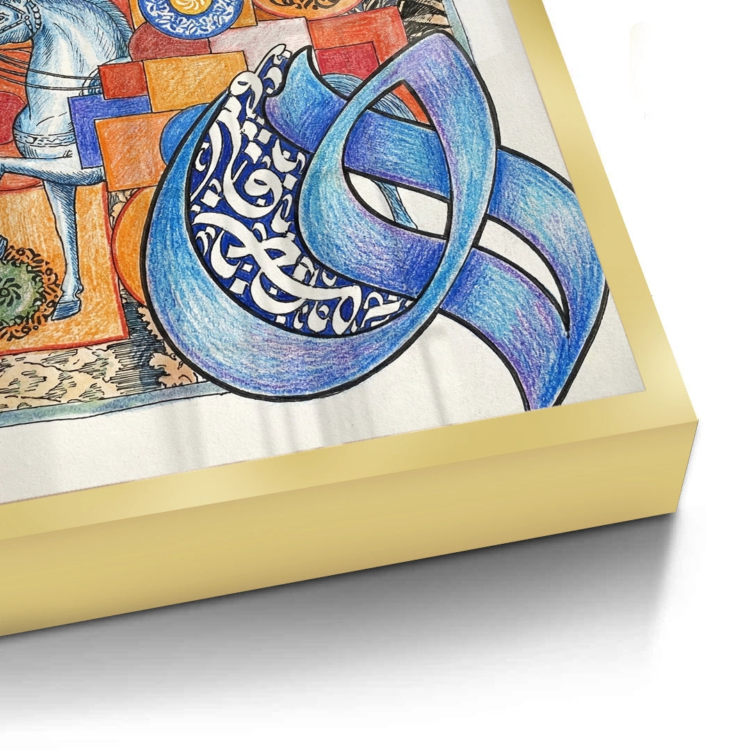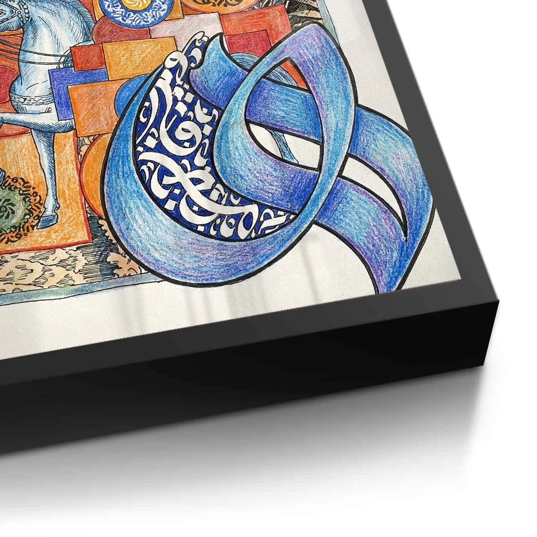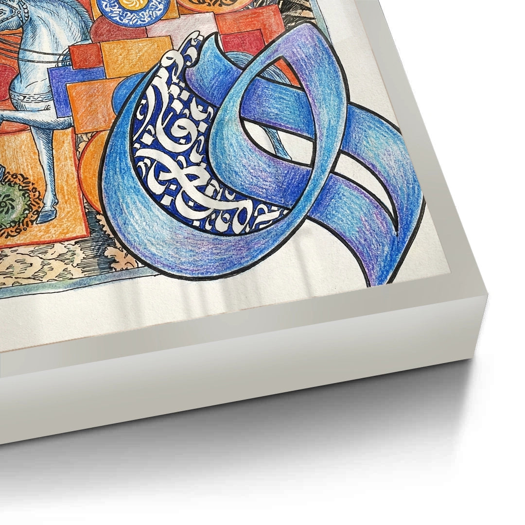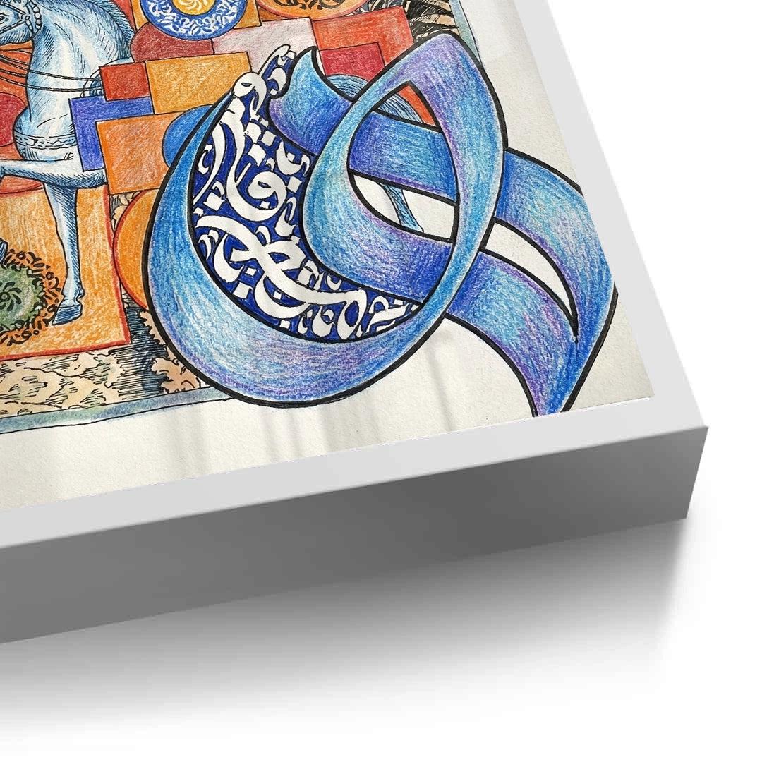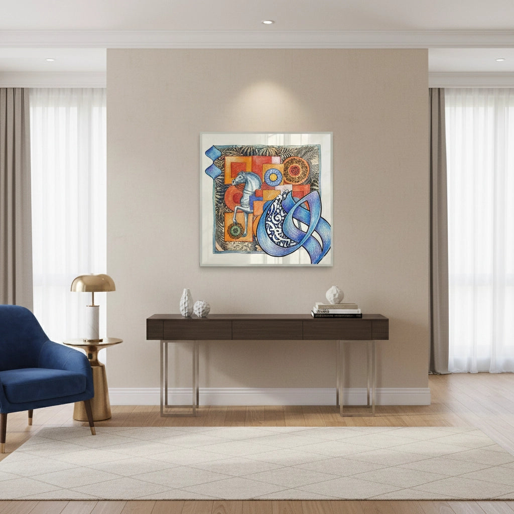 The whimsical Spirit of the East - The Harvest print offers a vibrant, figurative departure within the collection. This charming artwork celebrates life and abundance through eight cheerful, smiling fruit characters in a simple, hand-drawn style. While distinct from pure script, it embodies the artistic spirit and vibrant colour palette often found in contemporary art of the region. Add this unique, colourful, and positive piece to your collection for an eclectic touch.