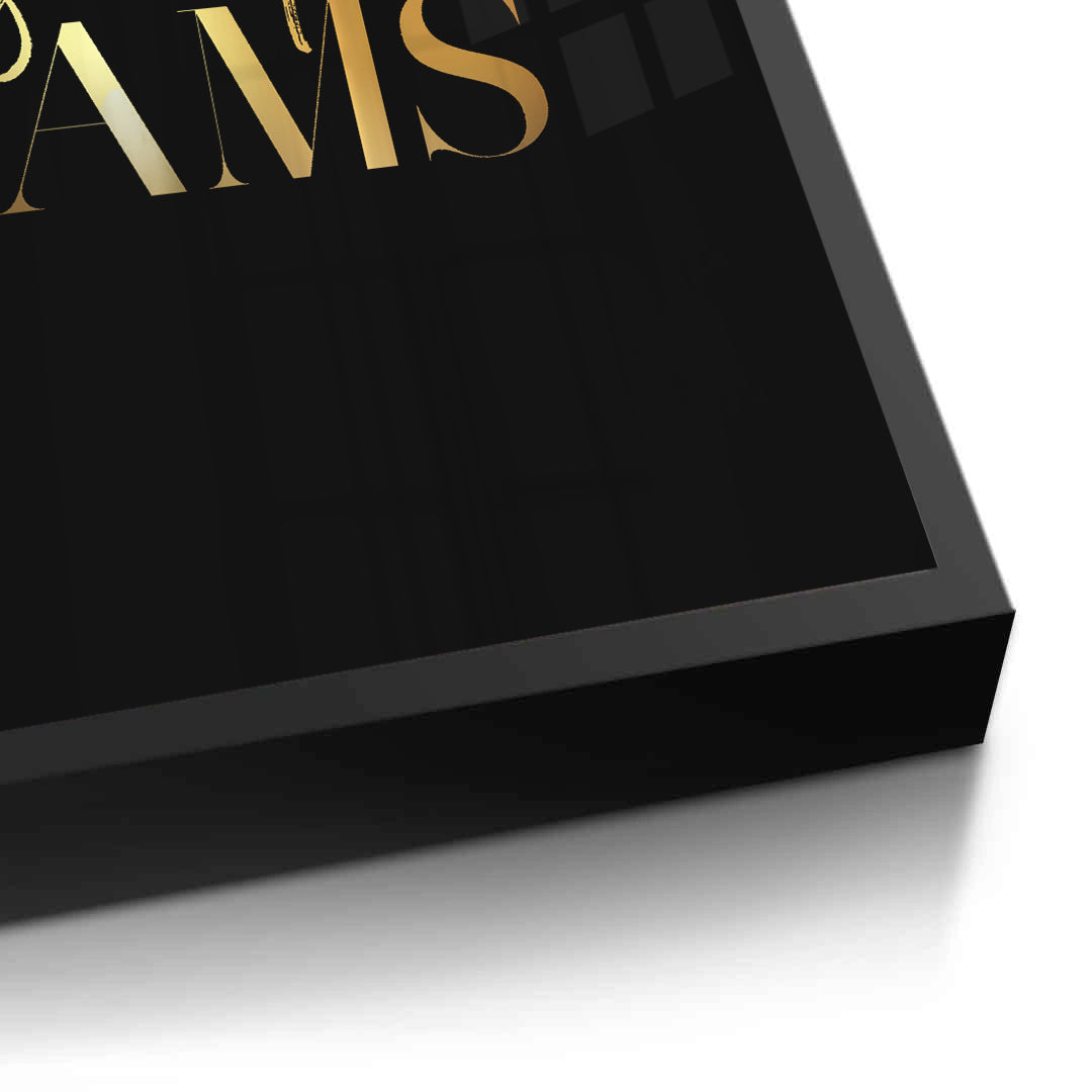 Elevate your sanctuary with the Sweet Dreams typography print by Jasmine Art. This exquisite piece masterfully combines a bold serif font with an elegant golden script, creating a visually stunning focal point for any bedroom. The rich metallic gold lettering against a textured black background exudes a sense of opulence and tranquility. Finished with our signature premium vertical texture, this artwork offers a sophisticated tactile depth that transforms a simple wall into a gallery-quality statement. The perfect finishing touch for a master suite or a luxury guest room in Dubai.