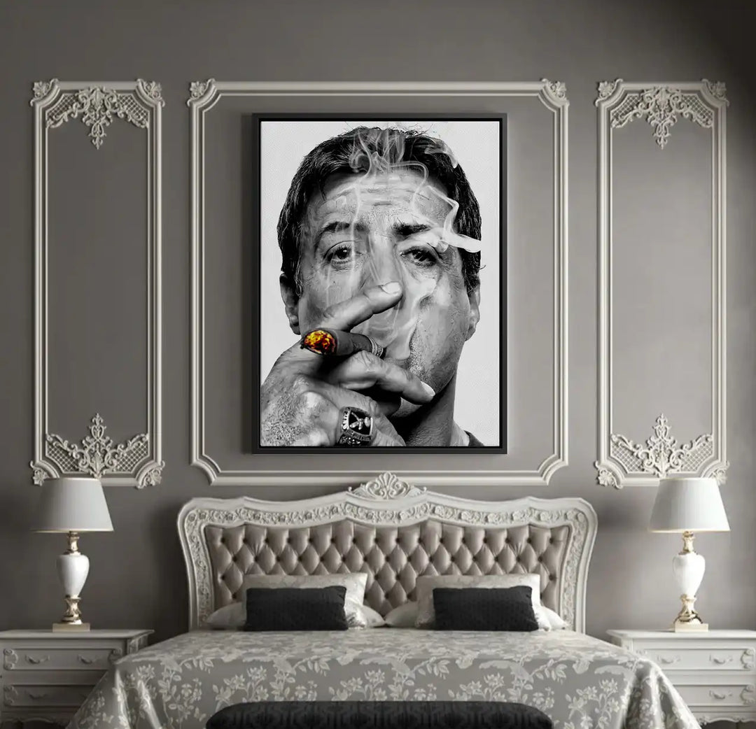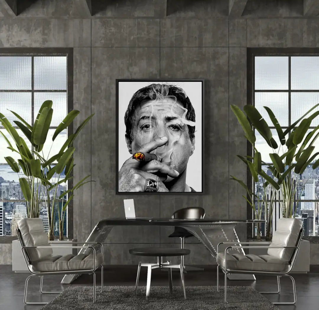 This striking piece pays tribute to the iconic strength and determination of Sylvester Stallone. Capturing his rugged charisma and enduring spirit through powerful lines and dramatic contrasts, the artwork embodies resilience, grit, and the relentless drive to overcome challenges. Perfect for fans of cinematic legends and spaces that celebrate courage and tenacity.