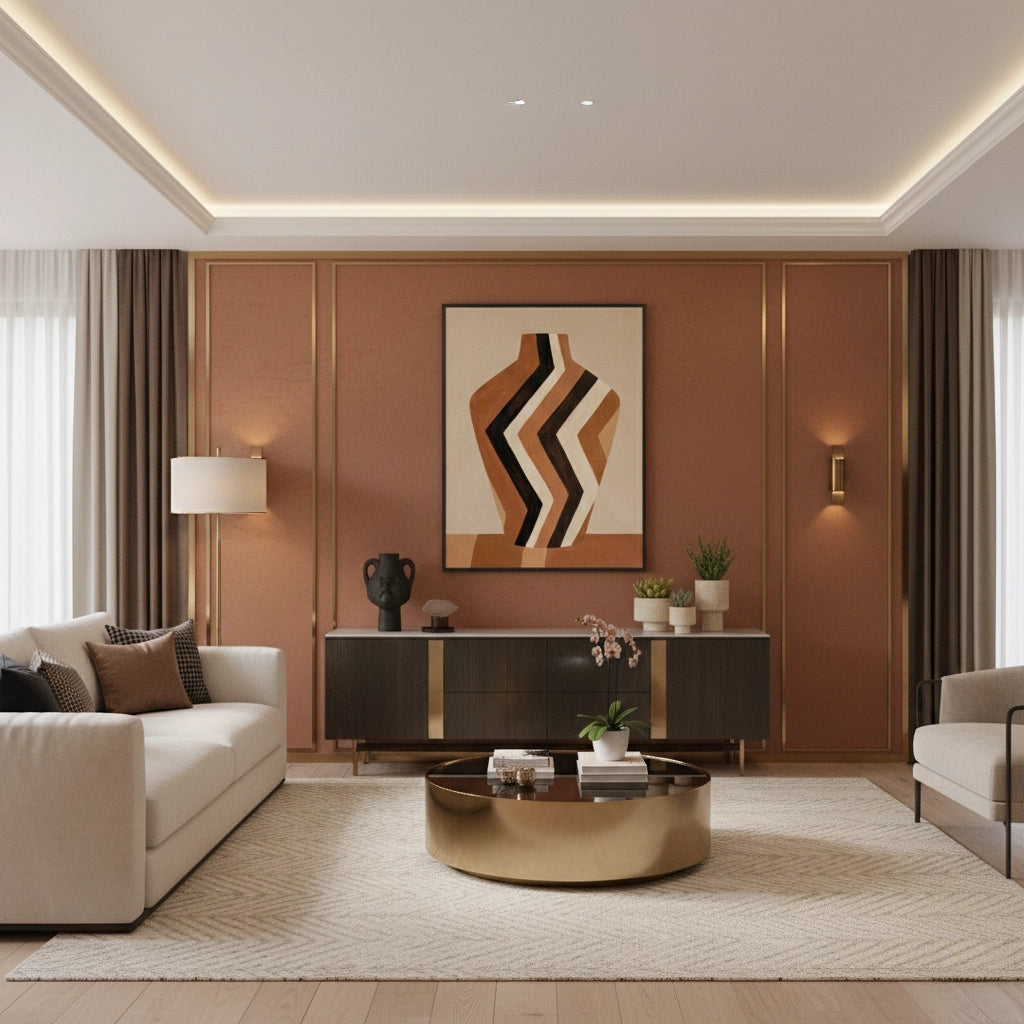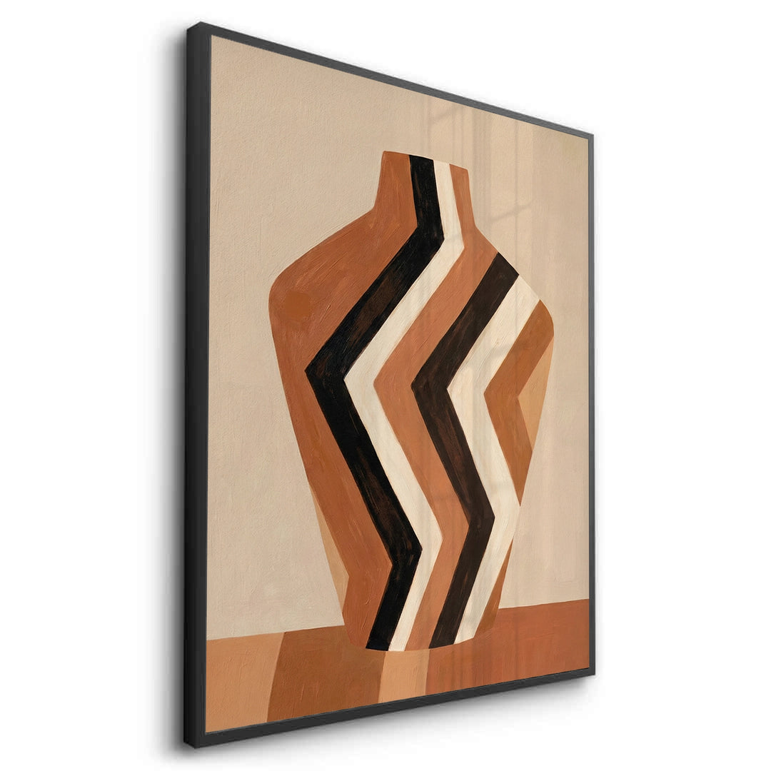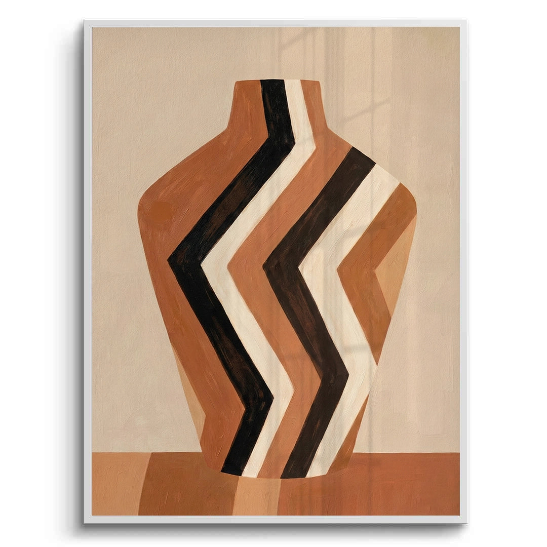 Infuse your home with earthy charm through Terra Zig-Zag from Jasmine Art’s Bohemian collection. This striking masterpiece features a tribal-inspired vase adorned with bold geometric zig-zag patterns in warm terracotta and chocolate tones. The hand-painted aesthetic brings a sense of authentic craftsmanship and rustic modernism to your walls. Finished with our signature premium vertical-ribbed texture, this print offers exceptional tactile depth and a high-end gallery finish. A perfect accent for a cozy living room, a Mediterranean-style bedroom, or a chic villa in Dubai.