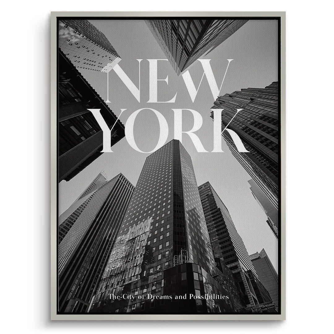 Celebrate the boundless energy of the big city with The City of Dreams art print. This bold monochrome poster features a dramatic upward view of New York City’s iconic skyscrapers, capturing the essence of ambition and modern architectural marvels. The striking black and white photography, paired with elegant typography, creates a sophisticated urban aesthetic. Finished with our signature premium vertical texture, this print offers a high-end tactile depth that enhances its sleek design. It is an ideal statement piece for a modern office, a contemporary living room, or a stylish loft in Dubai.