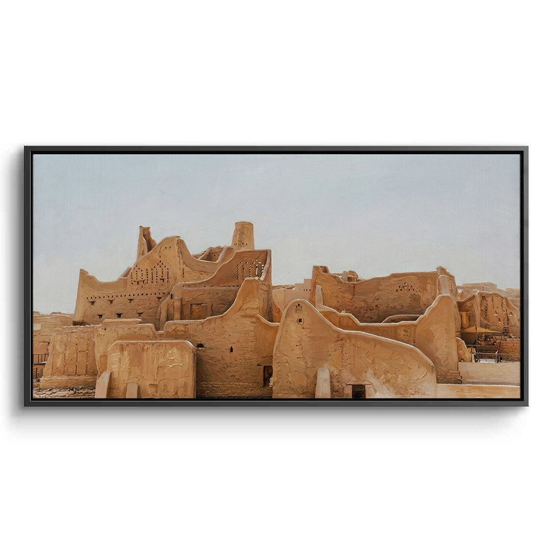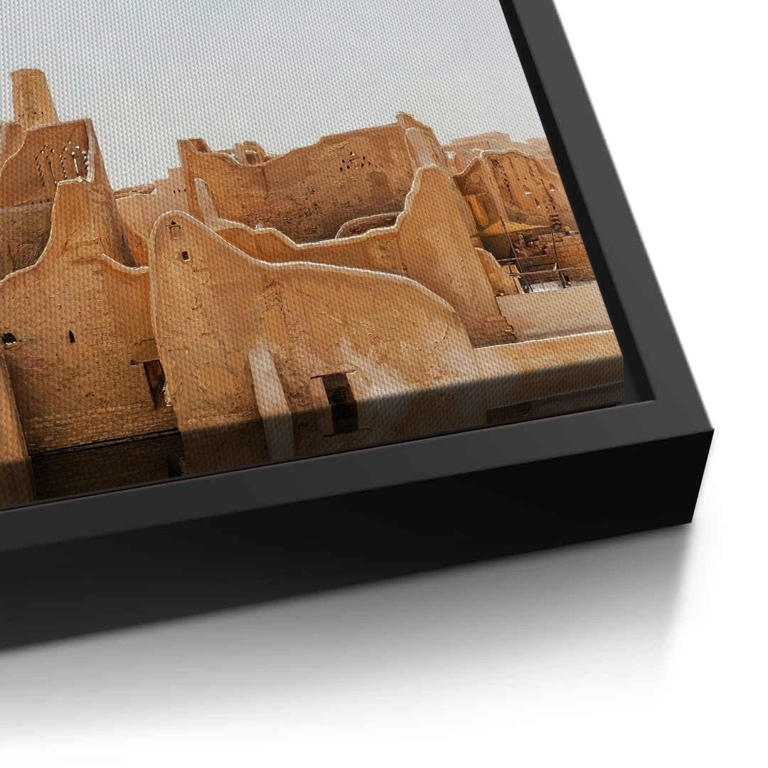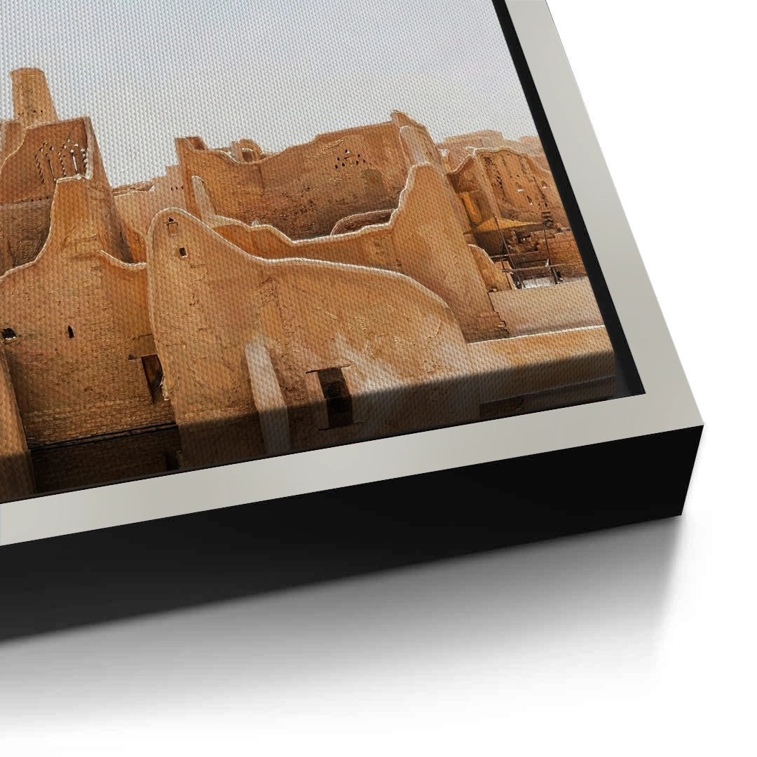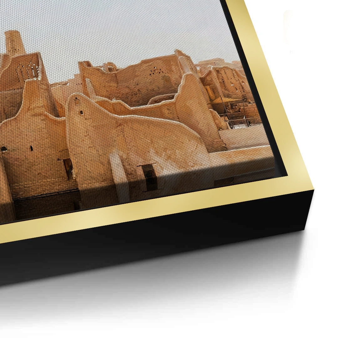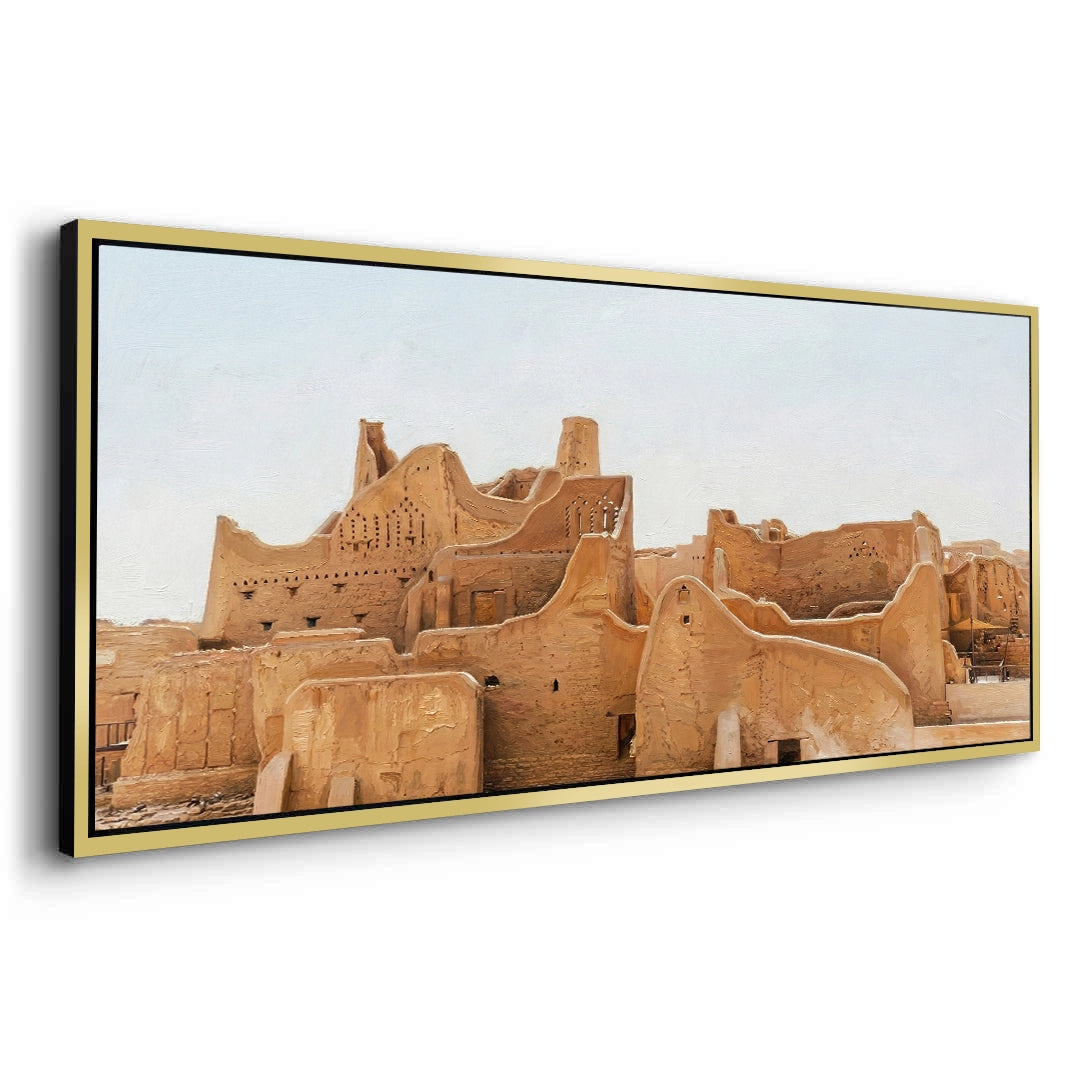 Immerse yourself in the roots of Arabian history with The City of Earth. This evocative photograph captures the historic At-Turaif district in Diriyah, showcasing the iconic Najdi mud-brick architecture and its organic, flowing silhouettes. The warm, earthy tones of sun-dried clay tell a story of resilience and timeless heritage. Finished with our signature premium vertical texture, this art print offers a rich tactile experience that brings the rugged beauty of the "City of Earth" into your modern space. An exceptional statement piece for a heritage-themed lounge, a high-end study, or a luxury residence in Dubai or Riyadh.