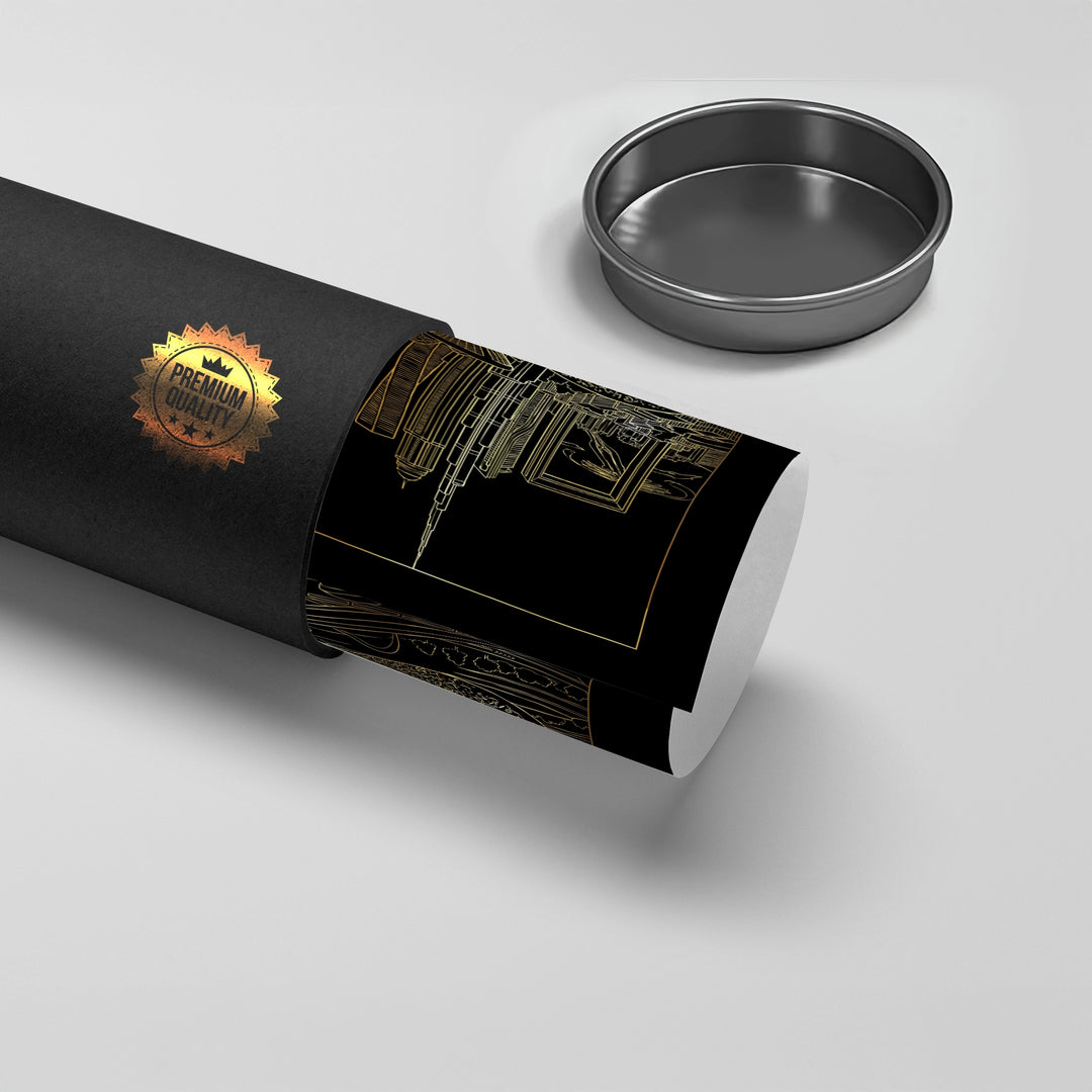 Celebrate the visionary spirit of the city with The Dubai Iconic Skyline art print. This premium illustration features Dubai’s most world-renowned landmarks—including the Burj Khalifa, Museum of the Future, and Dubai Frame—meticulously rendered in shimmering gold lines against a deep black background. The sophisticated contrast captures the architectural brilliance and futuristic energy of the emirate. Finished with our signature premium vertical texture, this piece offers a luxurious tactile depth that reflects the opulence of Dubai. A perfect statement piece for a high-end executive office, a modern penthouse, or a luxury living room.