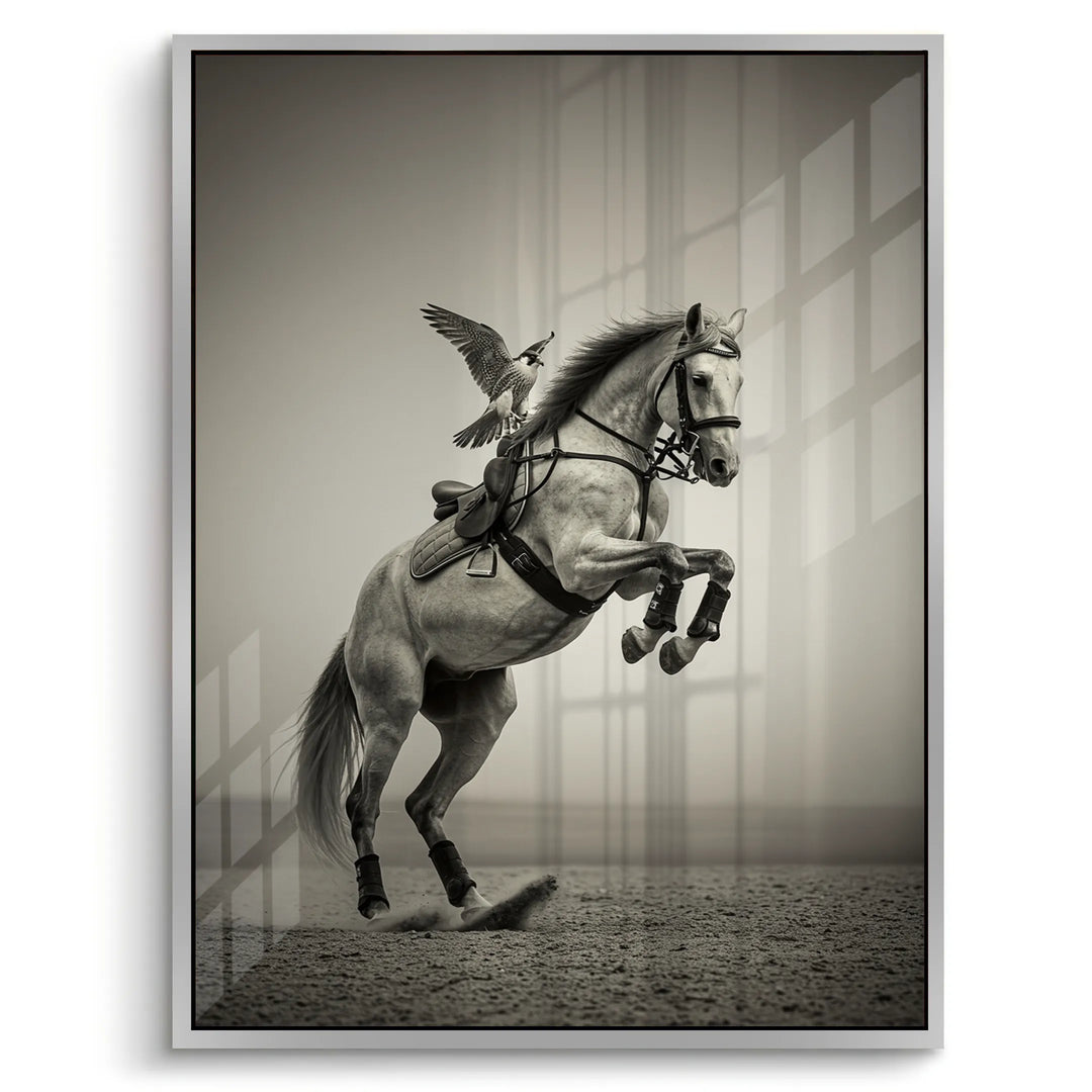 The Falconer’s Horse is a majestic artwork that pays tribute to the deep-rooted Arabian traditions of falconry and horsemanship. With intricate detail and powerful symbolism, it captures the bond between strength, freedom, and heritage. This piece reflects elegance, cultural pride, and timeless beauty, making it a perfect centerpiece for homes, offices, or galleries that appreciate art inspired by UAE heritage.