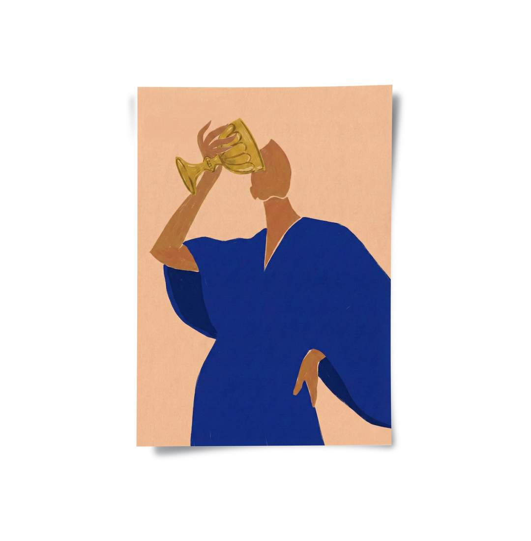 Elevate your space with the bold elegance of The Golden Sip from Jasmine Art’s Bohemian series. This striking minimalist portrait features a deep blue silhouette enjoying a moment of luxury with a golden goblet, set against a warm, sandy backdrop. Its high-fashion aesthetic and rich color contrast bring a sophisticated, modern focal point to any contemporary room. Finished with our signature premium vertical texture, this print provides exceptional tactile depth and a high-end gallery finish. A perfect statement piece for a chic lounge, a modern dining area, or a luxury bedroom in Dubai.