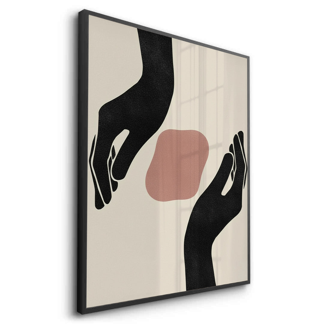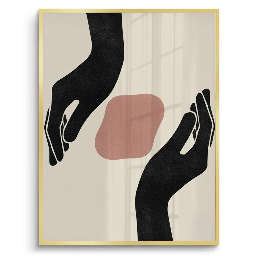 Celebrate the beauty of care and connection with The Guardian from Jasmine Art’s Bohemian collection. This minimalist masterpiece features elegant black hand silhouettes cradling a soft dusty rose organic shape, symbolizing protection and peace. The serene palette and fluid lines bring a touch of contemporary Boho-chic elegance to your home. Finished with our signature premium vertical-ribbed texture, this print offers exceptional tactile depth and a high-end gallery finish. A meaningful statement piece for a peaceful bedroom, a modern nursery, or a tranquil living room in Dubai.