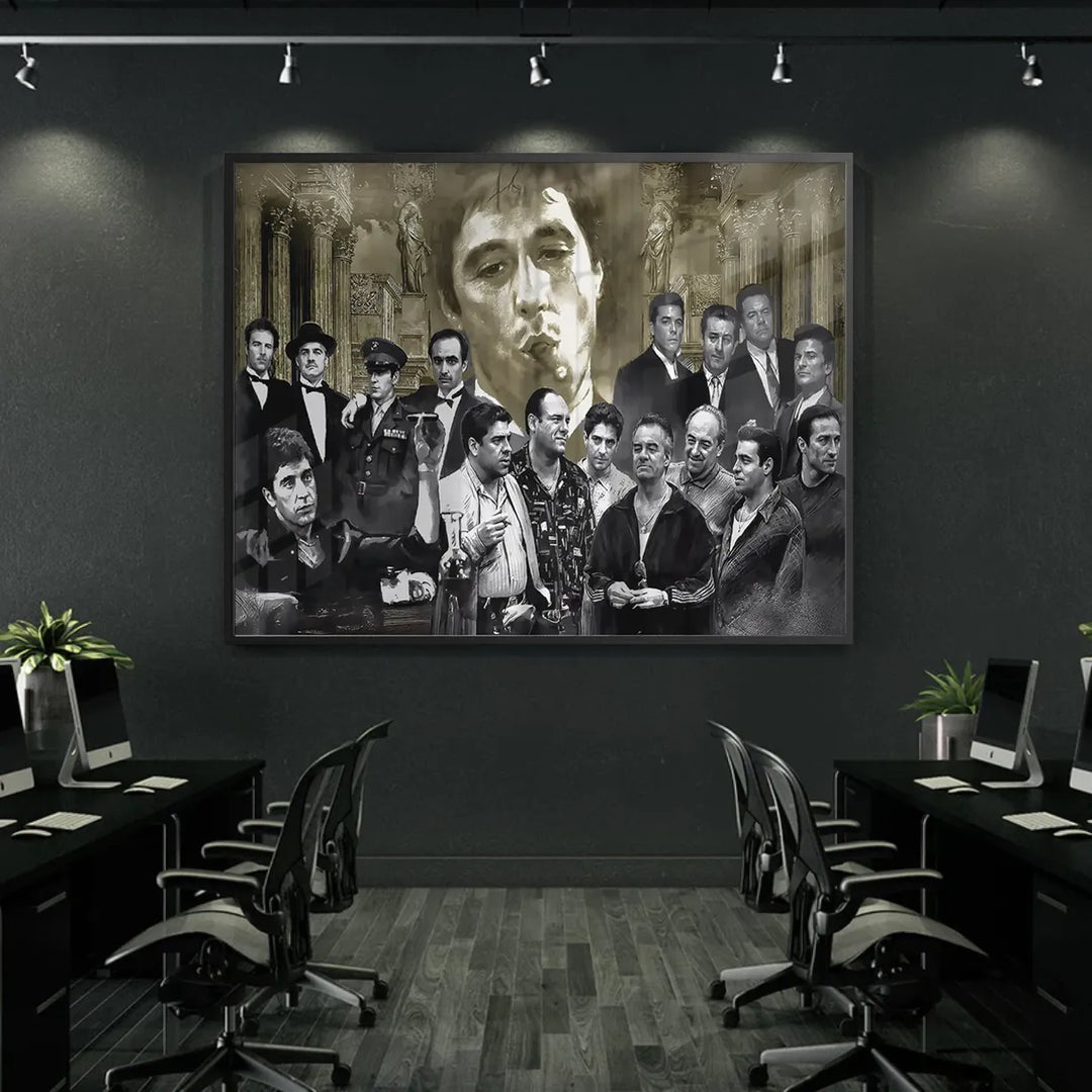An artwork that embodies power, mystery, and timeless charisma. With dark undertones and striking contrasts, it reflects the bold aura of legends who ruled with influence and style. The composition carries a cinematic feel, blending strength, elegance, and intrigue into one statement piece.