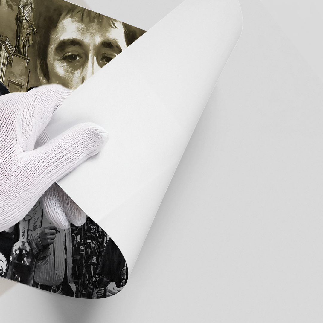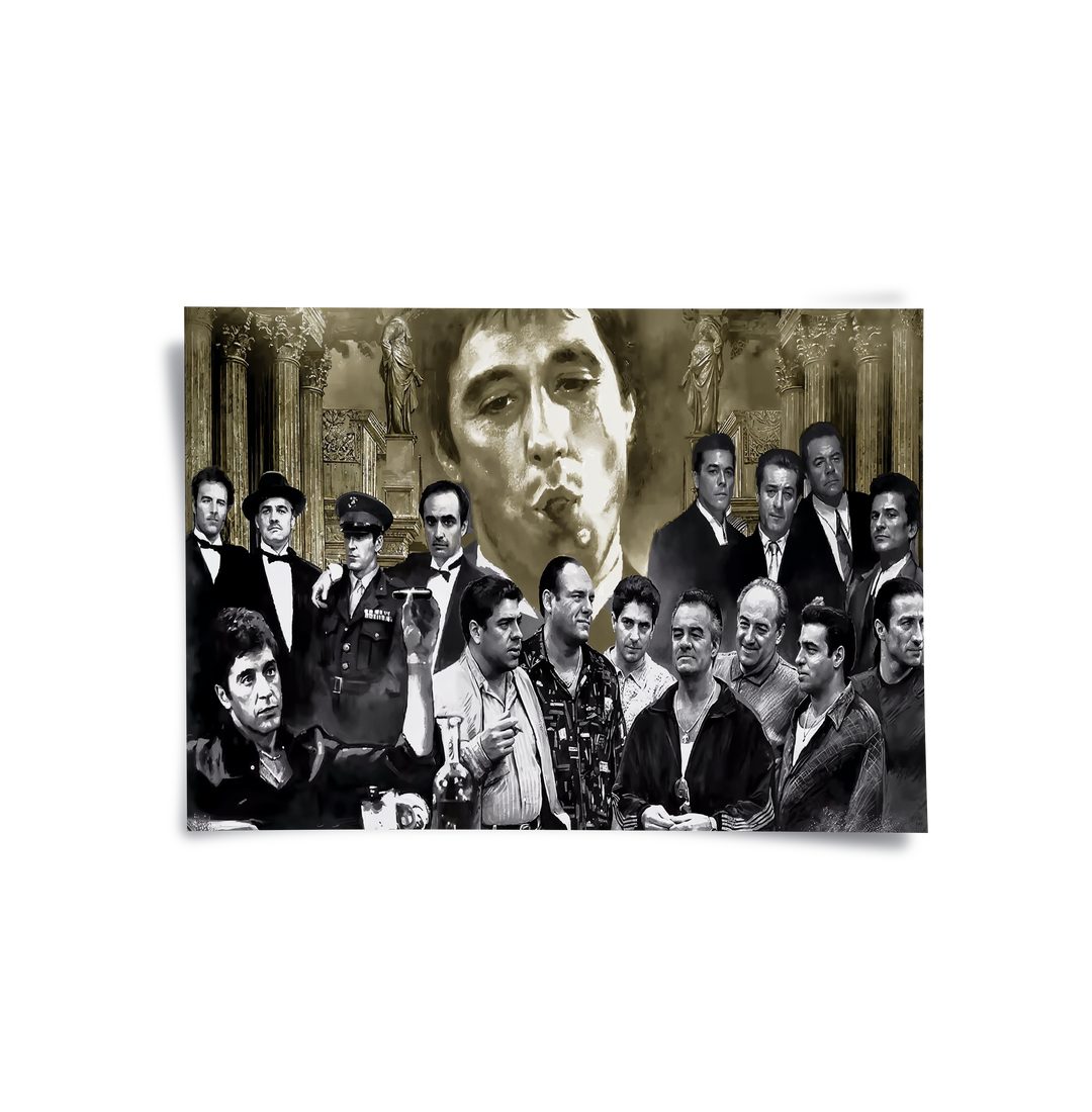 An artwork that embodies power, mystery, and timeless charisma. With dark undertones and striking contrasts, it reflects the bold aura of legends who ruled with influence and style. The composition carries a cinematic feel, blending strength, elegance, and intrigue into one statement piece.