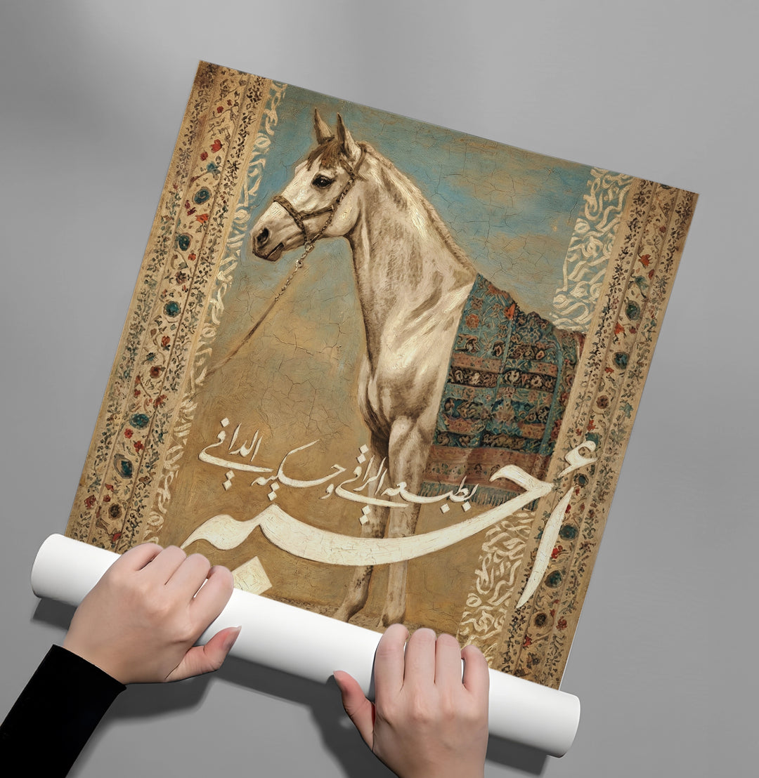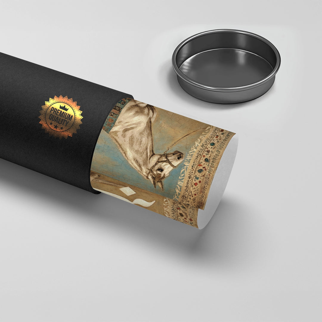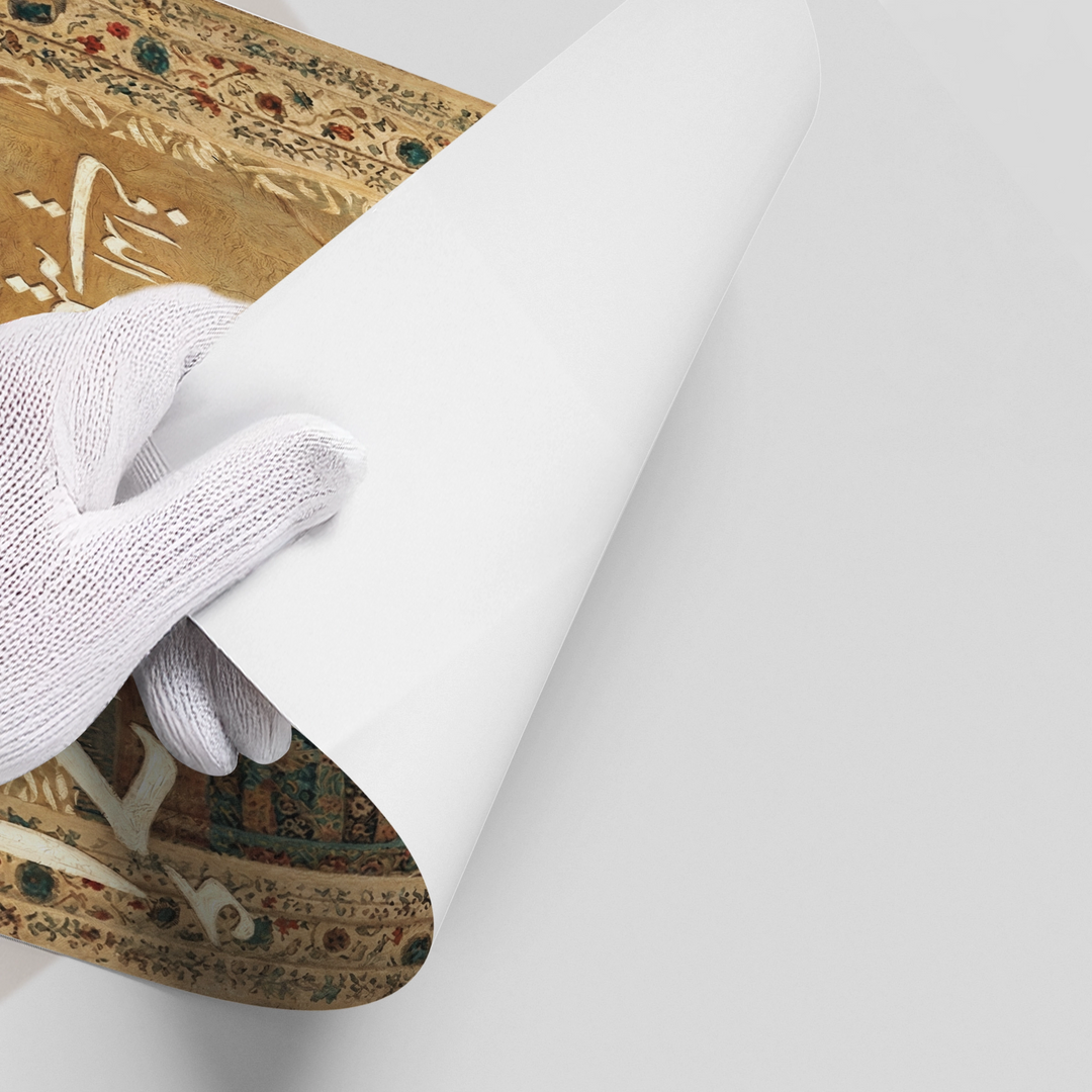 The profound Noble One - Muhammad (ﷺ) Gold Calligraphy print is a striking tribute to the beloved Prophet (ﷺ). The piece features the name Muhammad (محمد) rendered in dense, powerful metallic gold Arabic script, occupying the central canvas in a fluid and majestic form. Above, the protective Bismillah Al-Rahman Al-Raheem completes the divine composition. Set against a deep, elegant black background, this artwork offers a powerful, spiritually enriching, and highly luxurious focal point. Ideal for contemplative spaces and upscale homes in Dubai.