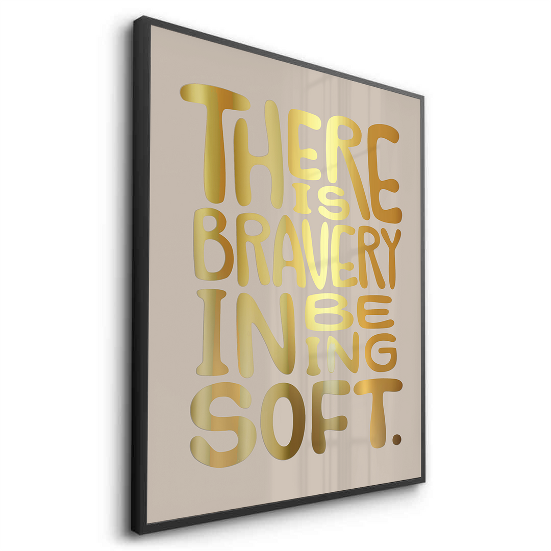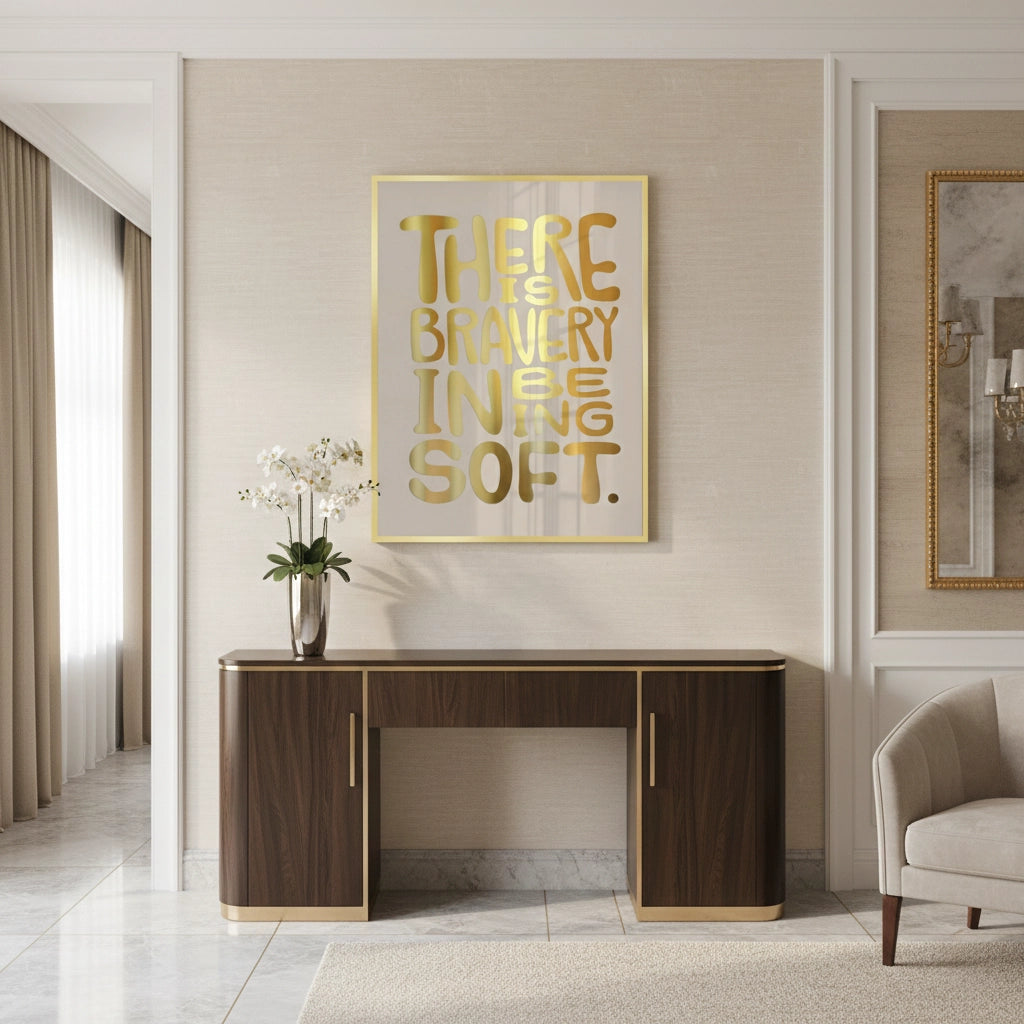 Celebrate the strength of kindness with the There Is Bravery In Being Soft art print from Jasmine Art. Featuring bold, rounded golden lettering against a warm greige backdrop, this piece redefines what it means to be strong. The playful yet sophisticated typography offers a gentle reminder that vulnerability is a form of courage. Finished with our signature premium vertical texture, this print provides a high-end tactile finish that adds warmth and depth to your walls. A meaningful addition to a nursery, a personal sanctuary, or a cozy living room in Dubai.