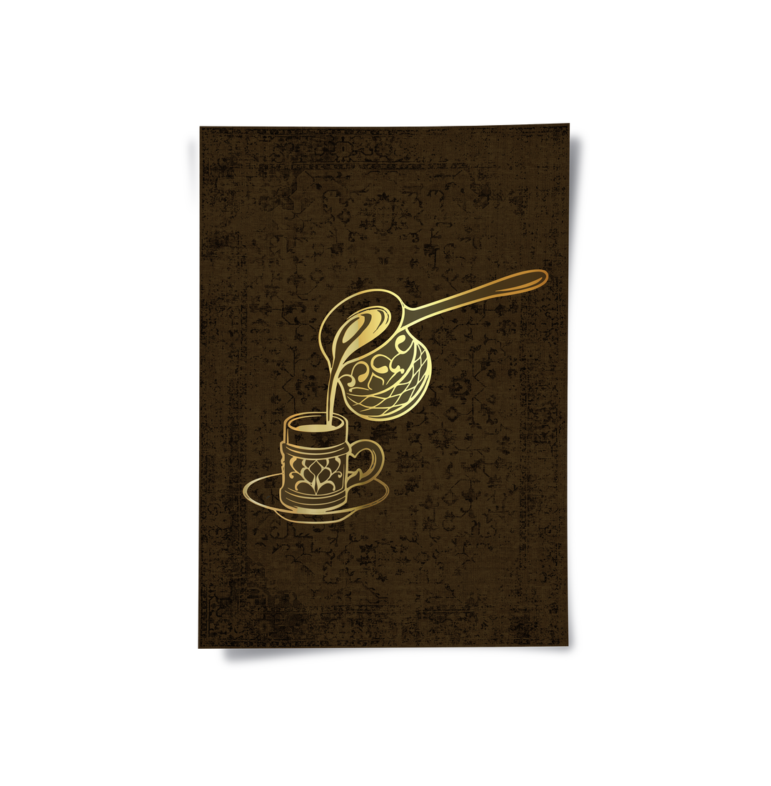 Define your coffee sanctuary with the Traditional Arabic Coffee Corner Set of 2 by Jasmine Art. This exquisite diptych features a graceful golden illustration of a Dallah pouring Gahwa, paired with elegant Arabic calligraphy reading "Rukn Al-Qahwa". Set against a rich, vintage-textured brown backdrop, the metallic gold details evoke the warmth and heritage of Arabian hospitality. Finished with our signature premium vertical texture, this set offers a luxurious tactile depth that transforms any kitchen or dining space into a gallery-quality experience. The perfect addition to a modern villa’s coffee nook or a traditional majlis in Dubai.