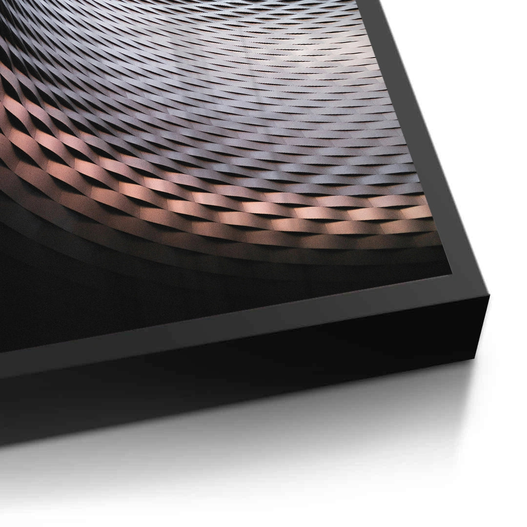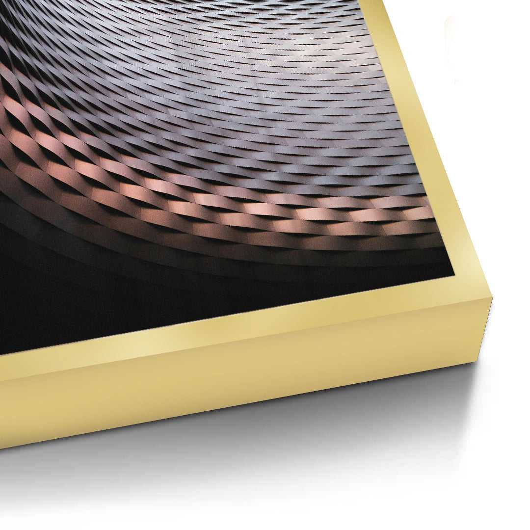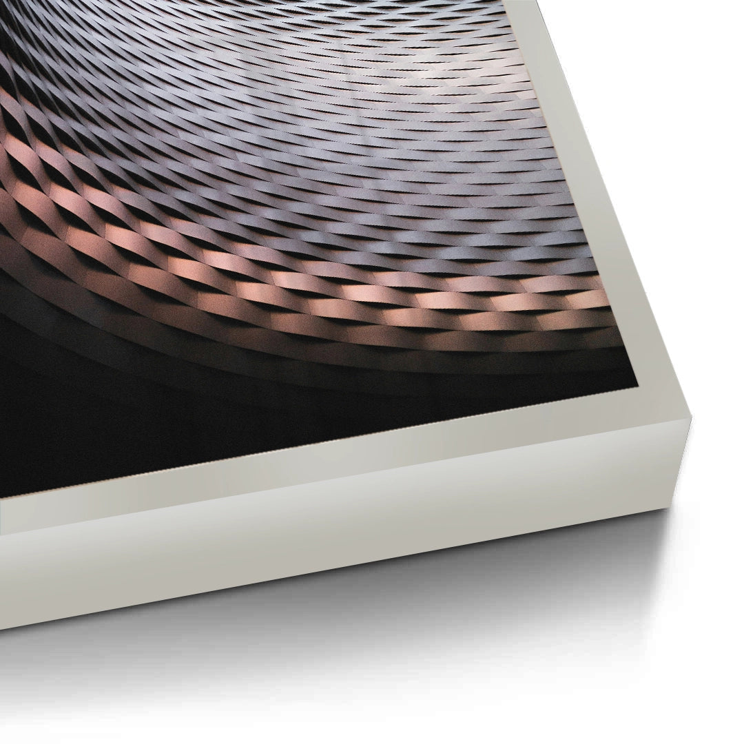Explore the boundless nature of modern design with Urban Infinity from Jasmine Art. This abstract architectural masterpiece features a sweeping curve of rhythmic, diamond-shaped metallic panels in rich copper and bronze tones. The upward spiral composition creates a sense of infinite movement and futuristic precision. Finished with our signature premium vertical texture, this print offers a sophisticated, multi-dimensional feel that captures the play of light on metal. A perfect statement piece for a high-tech corporate office, a minimalist lobby, or a luxury contemporary apartment in Dubai.
