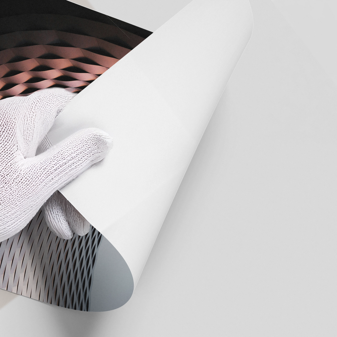 Explore the boundless nature of modern design with Urban Infinity from Jasmine Art. This abstract architectural masterpiece features a sweeping curve of rhythmic, diamond-shaped metallic panels in rich copper and bronze tones. The upward spiral composition creates a sense of infinite movement and futuristic precision. Finished with our signature premium vertical texture, this print offers a sophisticated, multi-dimensional feel that captures the play of light on metal. A perfect statement piece for a high-tech corporate office, a minimalist lobby, or a luxury contemporary apartment in Dubai.
