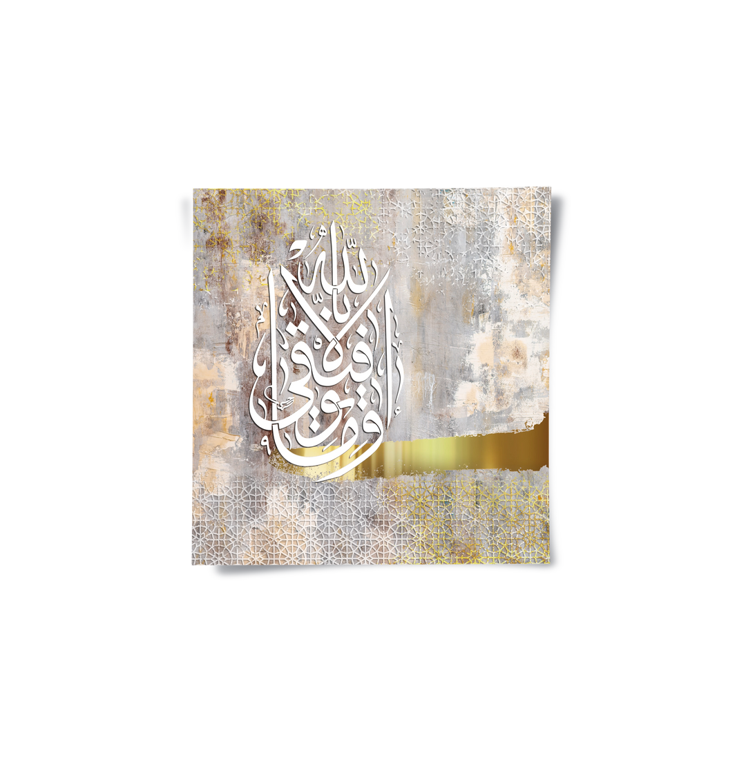Acknowledge the source of all achievement with the Wa Ma Tawfiqi Illa Billah from Jasmine Art’s Arabic Calligraphy collection. This sophisticated masterpiece features the sacred phrase "My success is only by Allah" in elegant white script, layered over a distressed grey and gold-accented background. The fusion of ancient geometric motifs and modern abstract textures creates a timeless spiritual statement. Finished with our signature premium grain texture, this print offers exceptional tactile depth and a luxury gallery finish. An ideal inspirational piece for an executive office, a formal Majlis, or a modern hallway in Dubai.