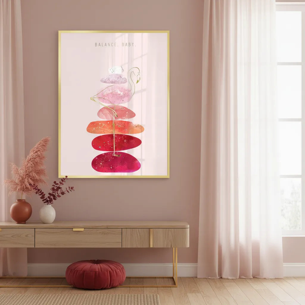 A beautiful, soft portrayal of the flamingo rendered in fluid watercolor. The gentle blending of pinks and blues creates a calm, artistic atmosphere. This piece is ideal for adding a serene, colorful touch that feels effortless and sophisticated.
