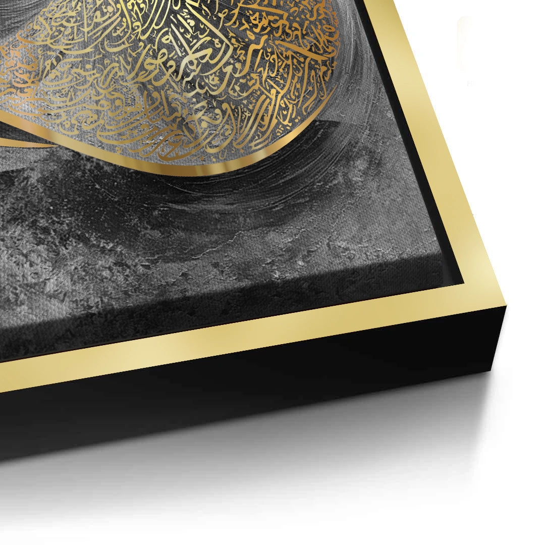 The transcendent Whirling Dervish - Gold Sufi Art print is a powerful expression of spiritual ecstasy and Rumi's philosophy. The artwork features a Sufi Dervish in a meditative, whirling dance, with the entire figure meticulously formed from intricate metallic gold Arabic calligraphy. The dense script captures the dynamic, flowing motion of the Sema. Set against a dramatic monochromatic, textured abstract background, this piece adds a deeply spiritual, artistic, and luxurious focal point. Ideal for contemplative spaces, studios, or upscale homes in Dubai.